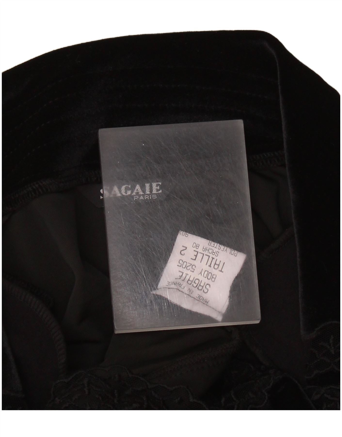 SAGAIE Womens Long Sleeve Velvet Bodysuit UK 12 Medium Black Polyester