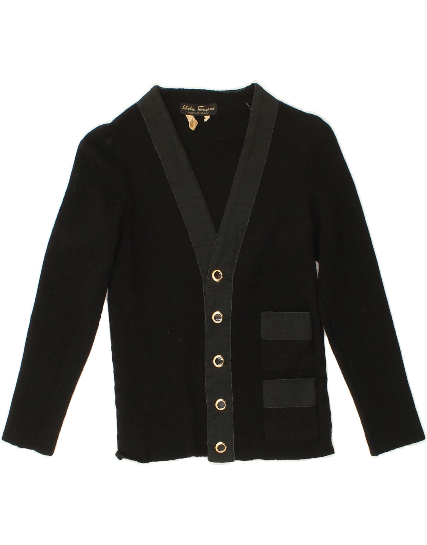 SALVATORE FERRAGAMO Womens 3/4 Sleeve Cardigan Sweater UK 8 Small Black