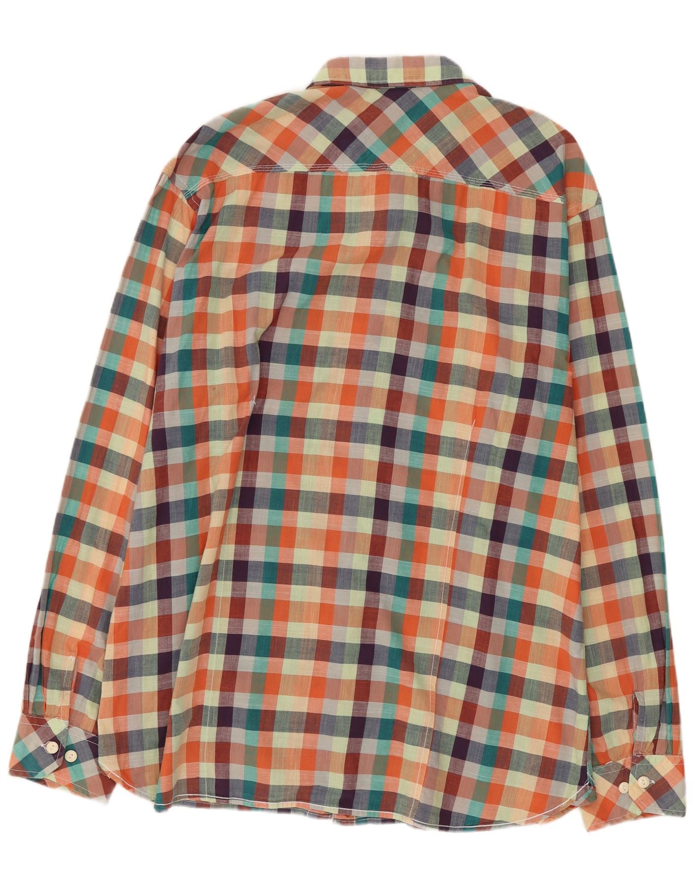 - AI Description: This Scotch & Soda mens shirt is crafted from 100 percent woven cotton, featuring a vibrant multicoloured check pattern. The collared neckline and full button-up front offer a classic, smart aesthetic. Long sleeves finish with neat buttoned cuffs. A single chest pocket adds practical detail. Its regular fit ensures comfortable wear and a timeless silhouette.