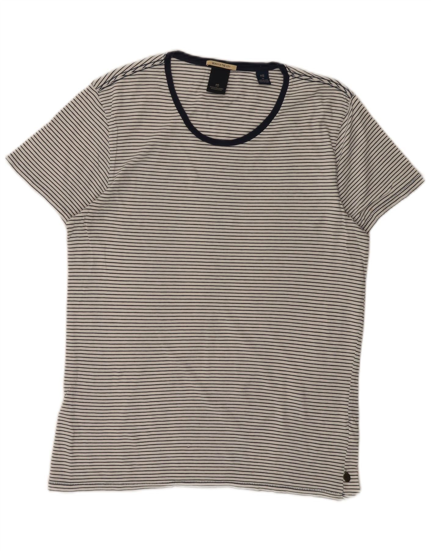 SCOTCH & SODA Mens T-Shirt Top Medium White Pinstripe Cotton