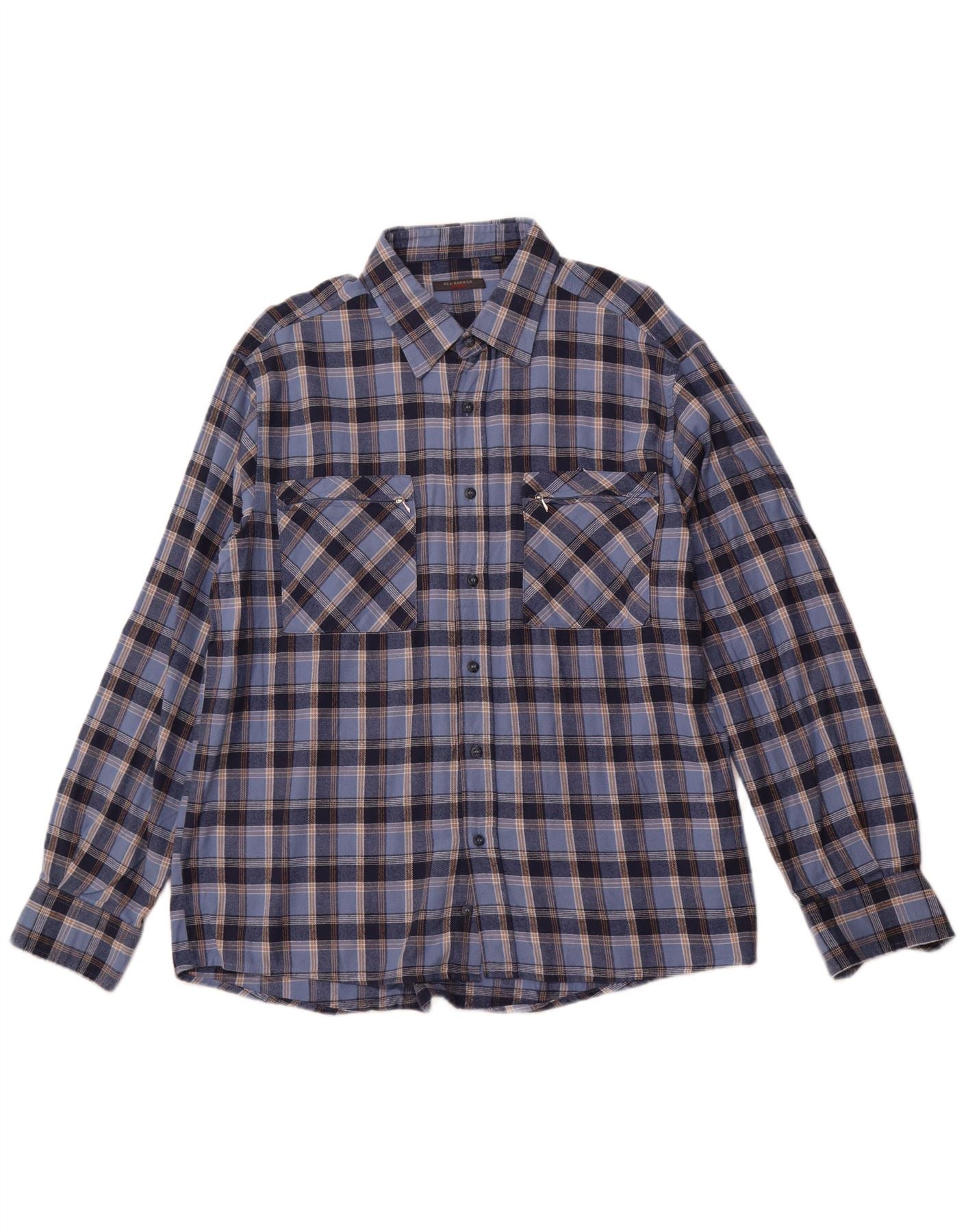 SEA BARRIER Mens Flannel Shirt XL Blue Check Cotton