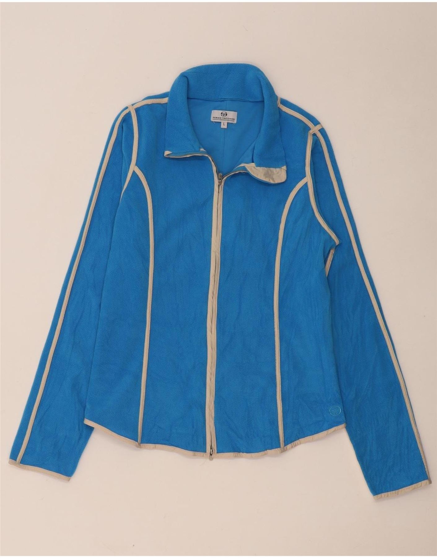SERGIO TACCHINI Womens Fleece Jacket UK 14 Large Blue Striped Polyester