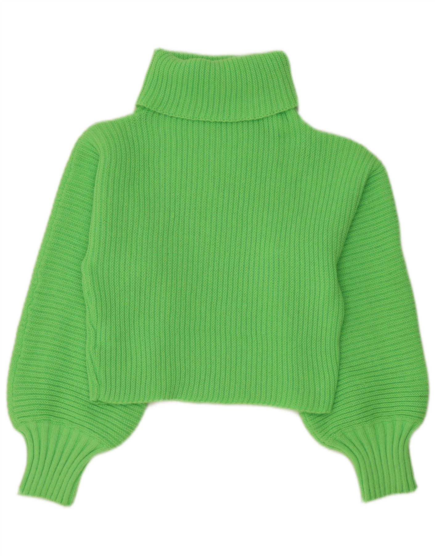 SHEIN Womens Crop Roll Neck Jumper Sweater UK 12 Medium Green Polyester
