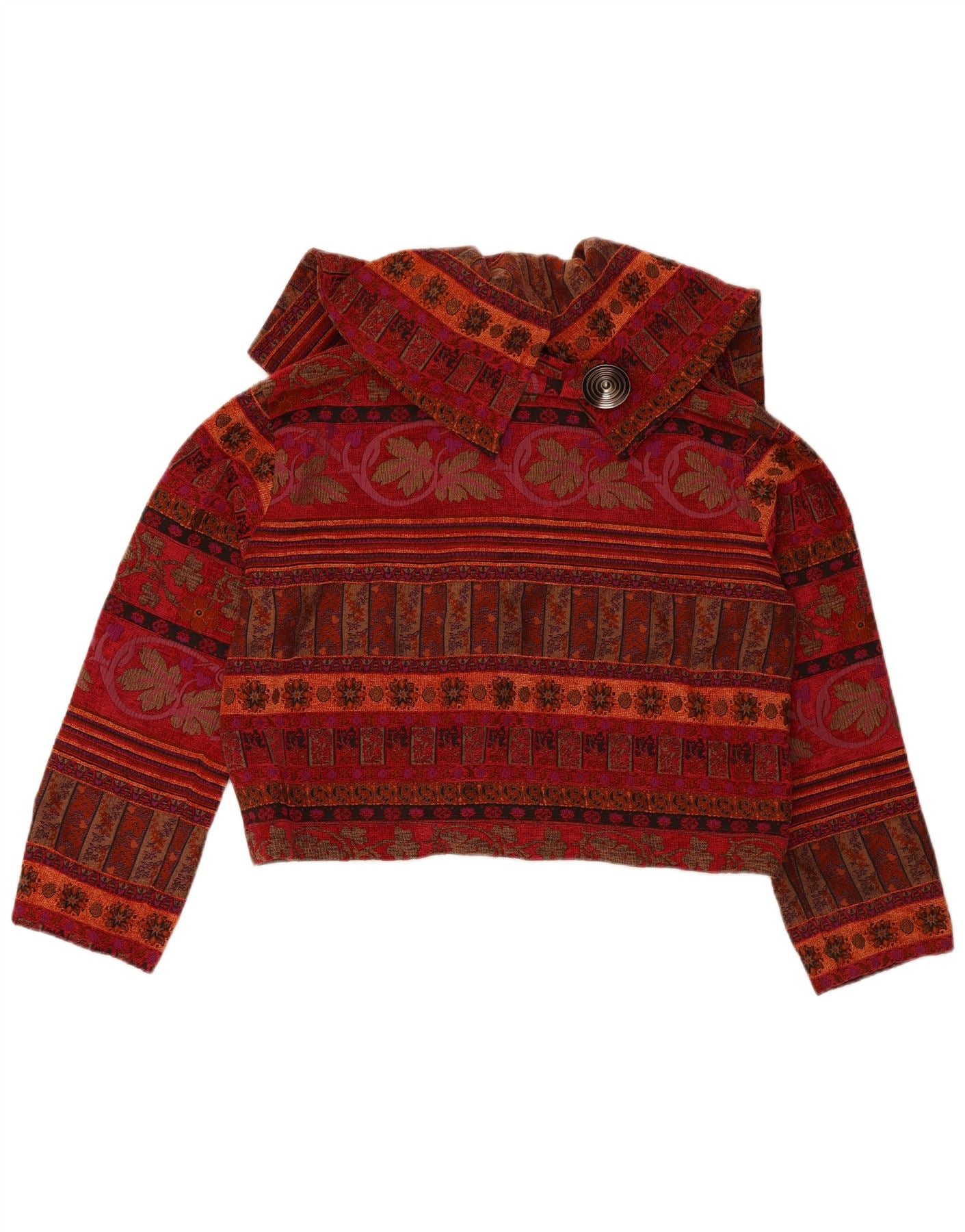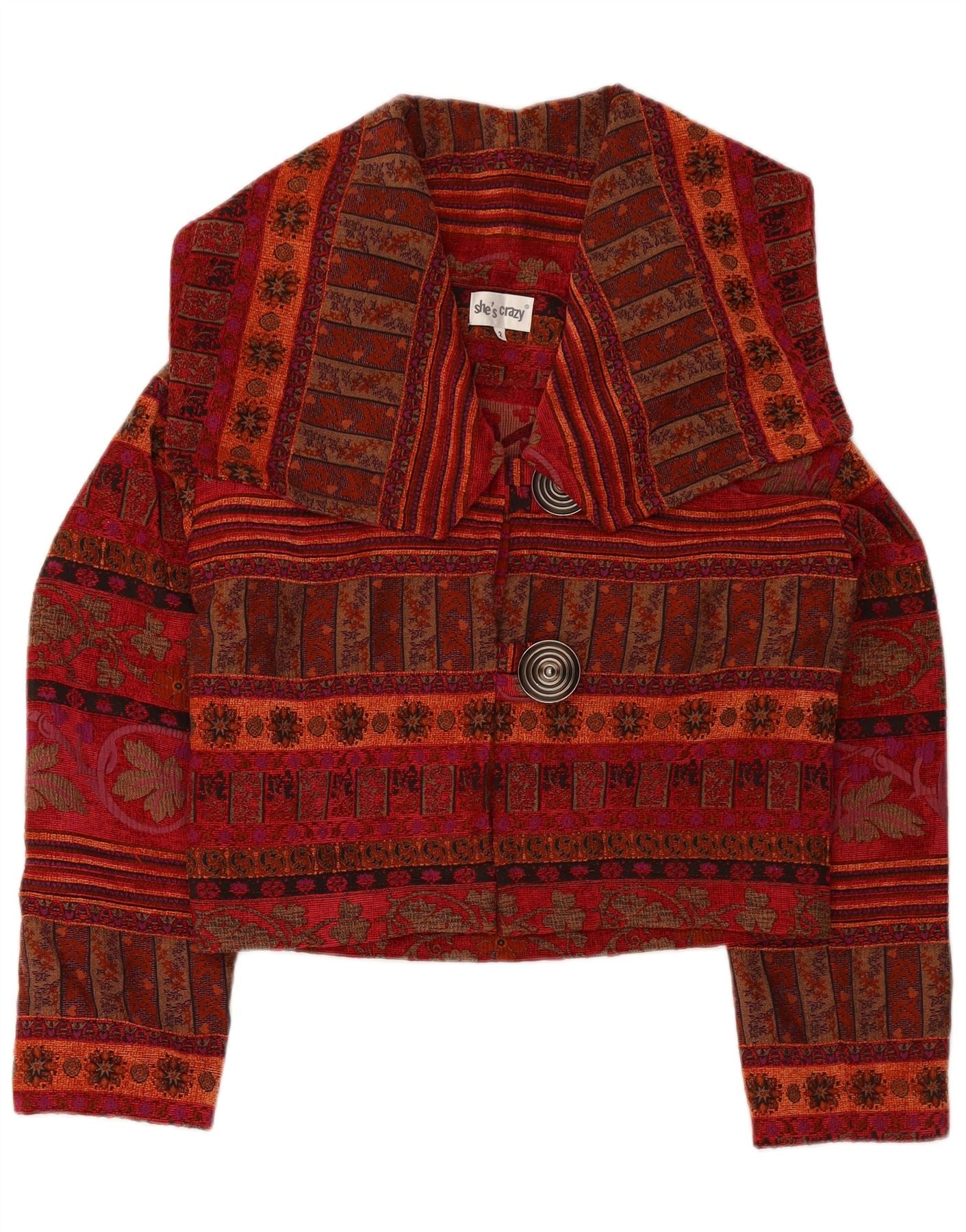 SHE'S CRAZY Womens Crop Oversized Blazer Jacket US 2 XS Burgundy Floral