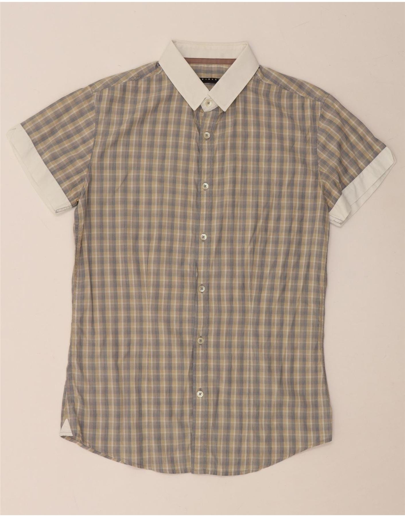 SISLEY Mens Short Sleeve Shirt Small Grey Check