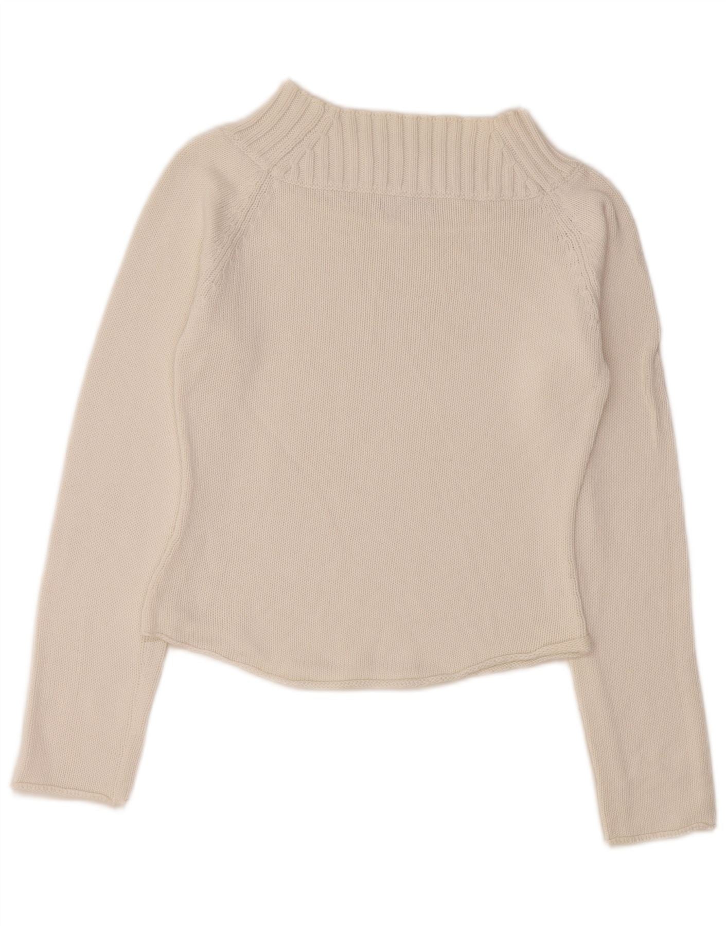 SISLEY Womens Crop Turtle Neck Jumper Sweater UK 10 Small White Cotton