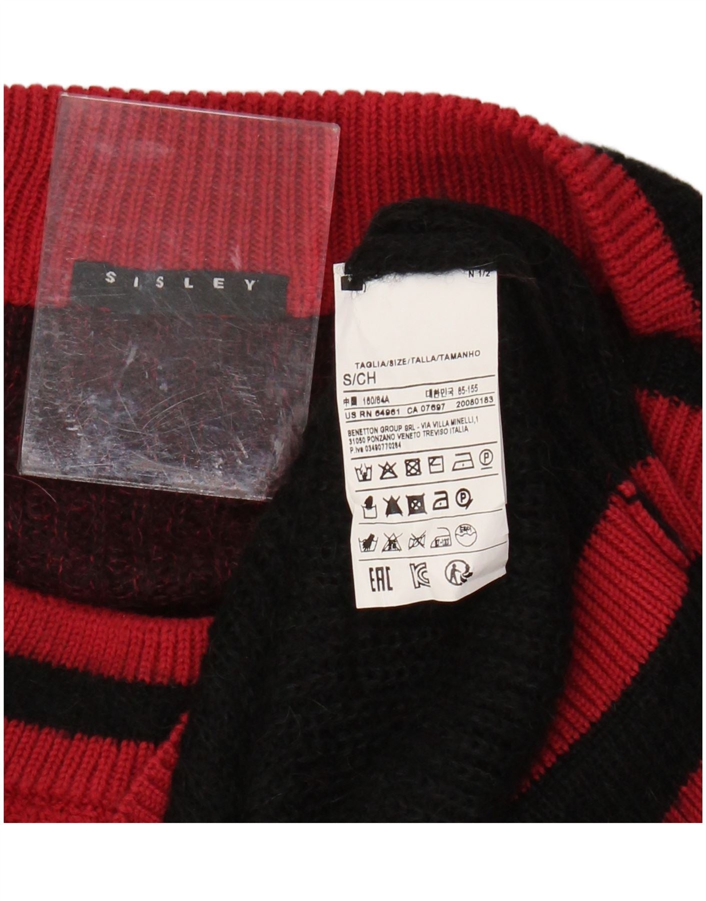 SISLEY Womens Turtle Neck Jumper Sweater UK 10 Small Burgundy Colourblock