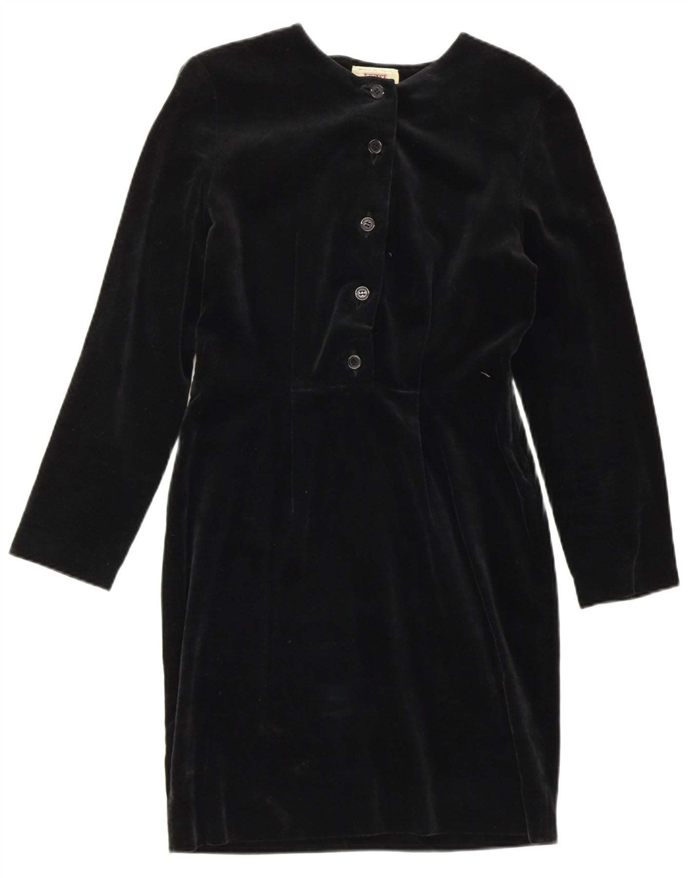 SISLEY Womens Velvet Sheath Dress UK 6 XS Black Cotton