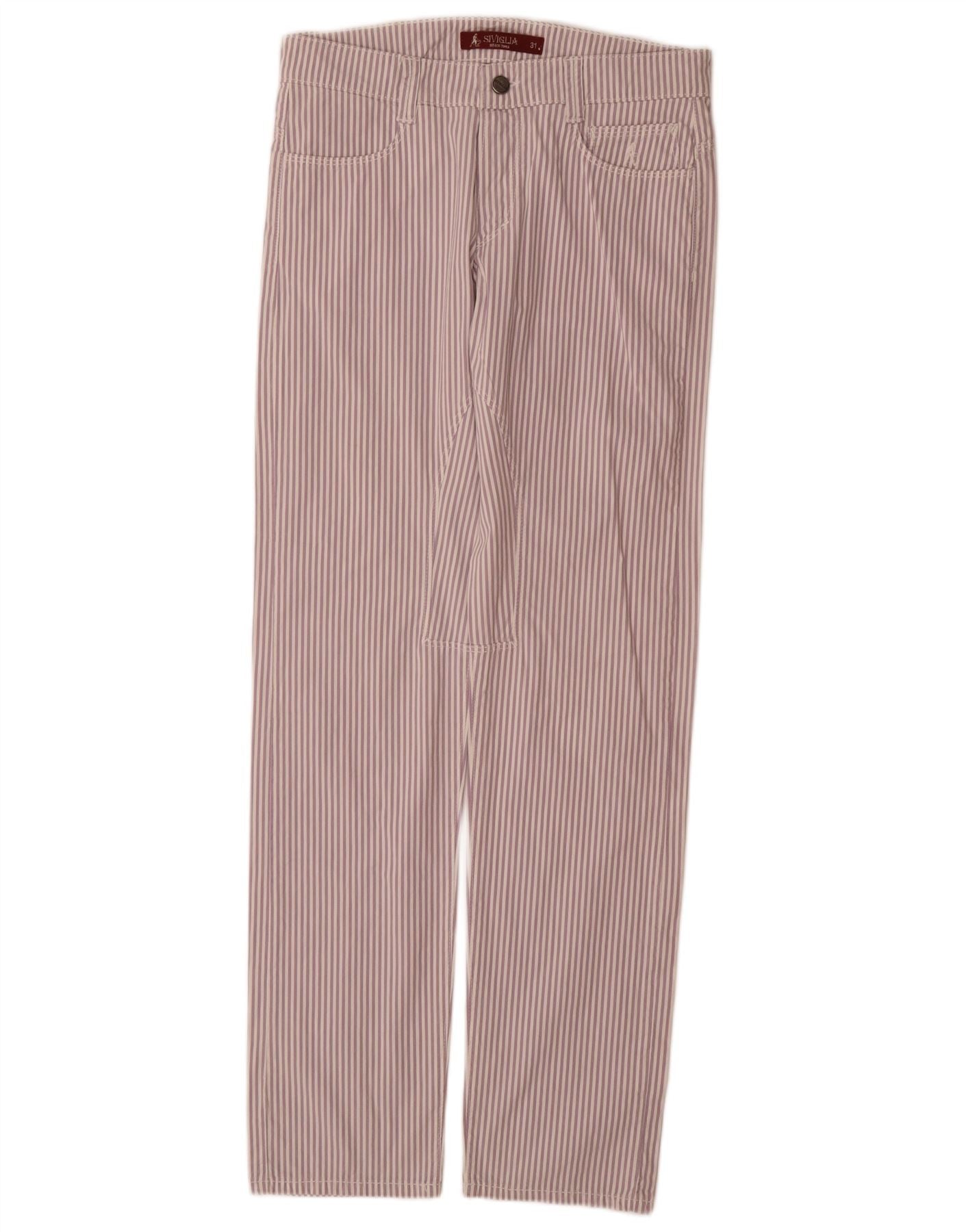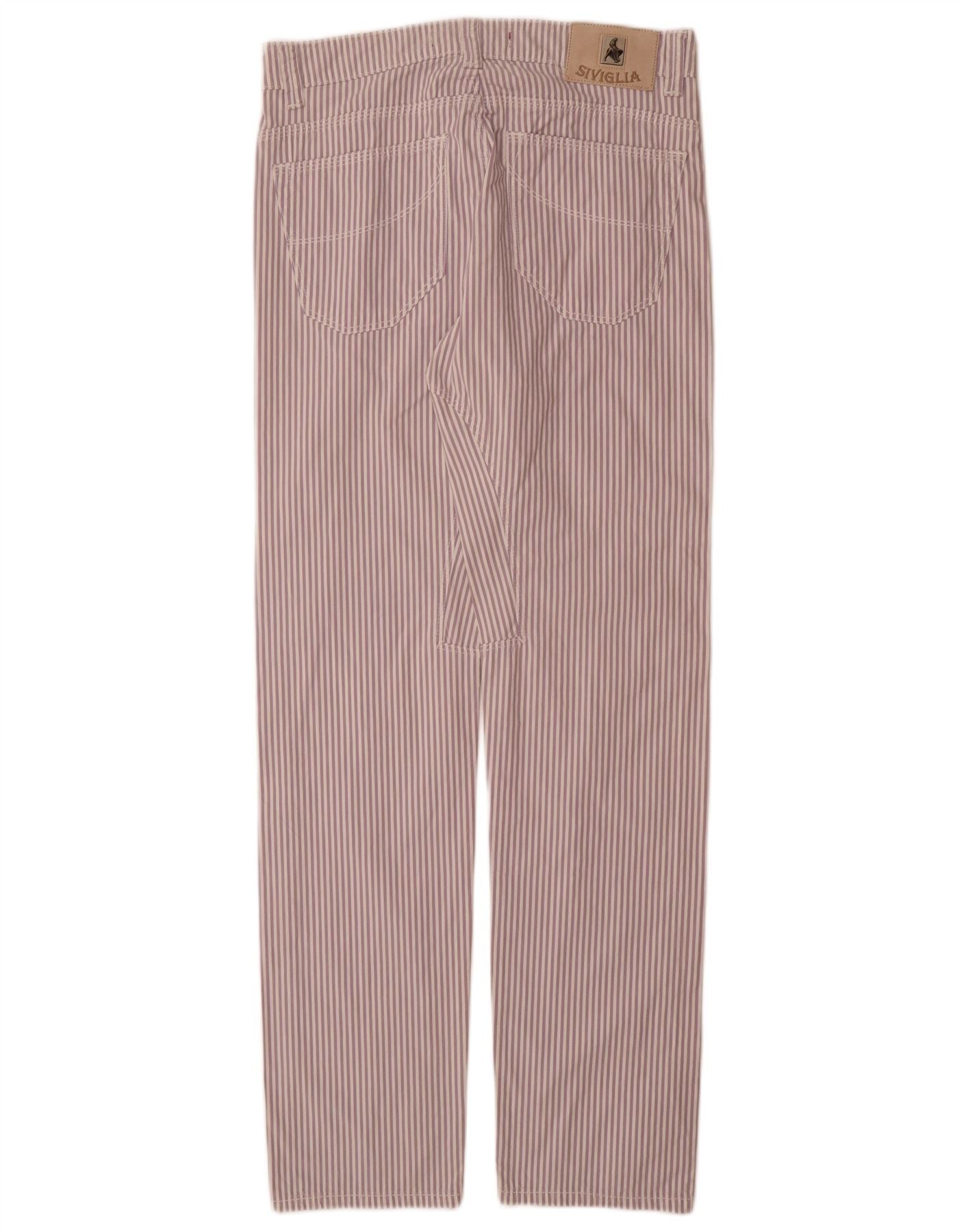 SIVIGLIA Womens Straight Casual Trousers W31 L33 Purple Pinstripe Cotton