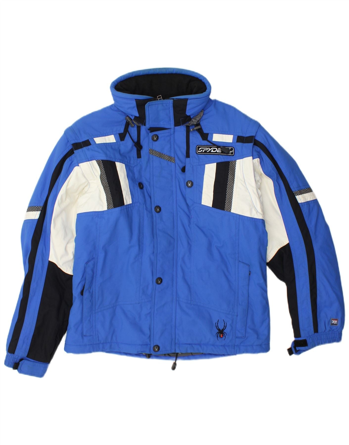 Spyder Boys Hooded Ski Jacket 15-16 Years XL Blue Colourblock Polyester