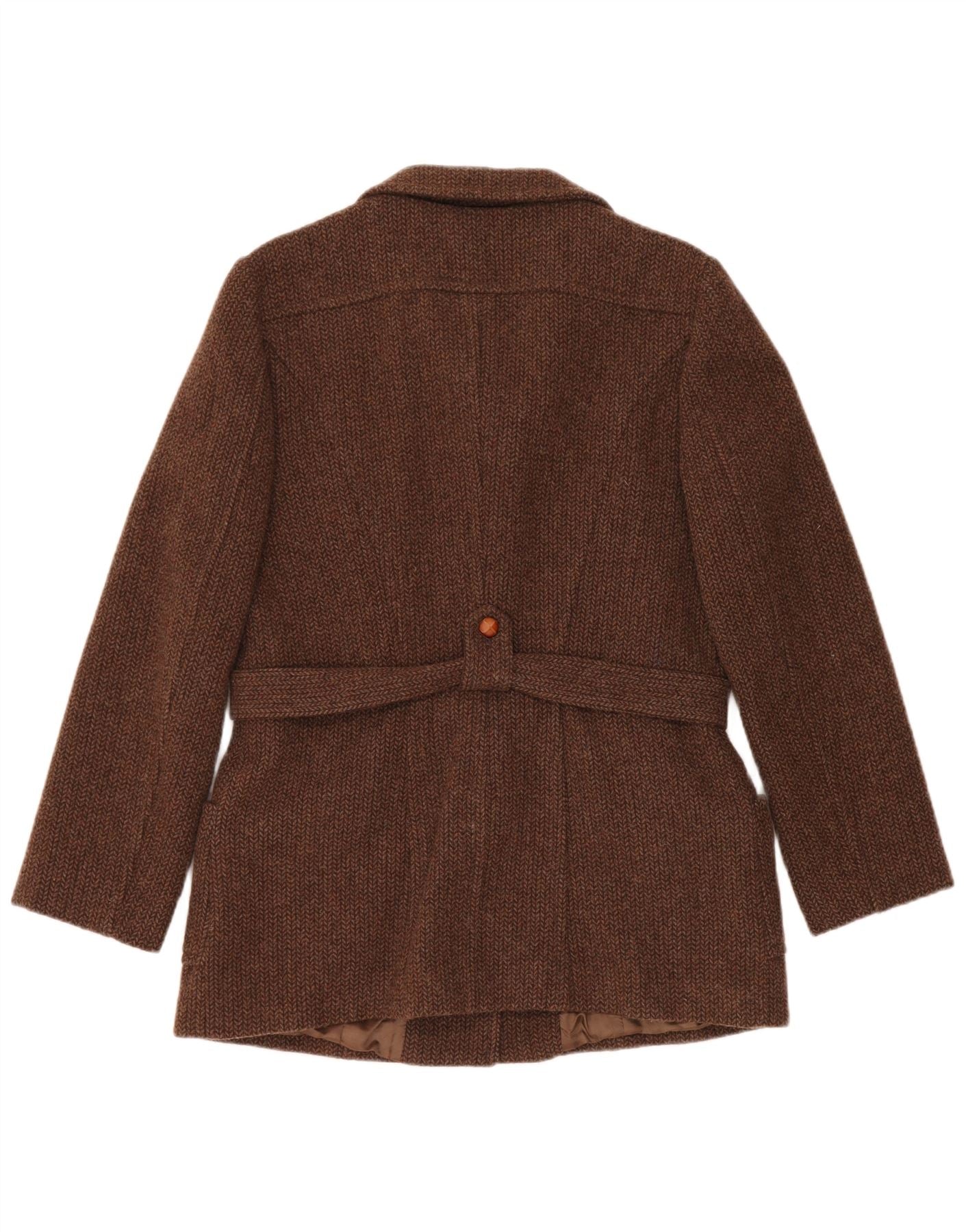 STEFANEL Womens Overcoat IT 48 XL Brown Herringbone Lambswool