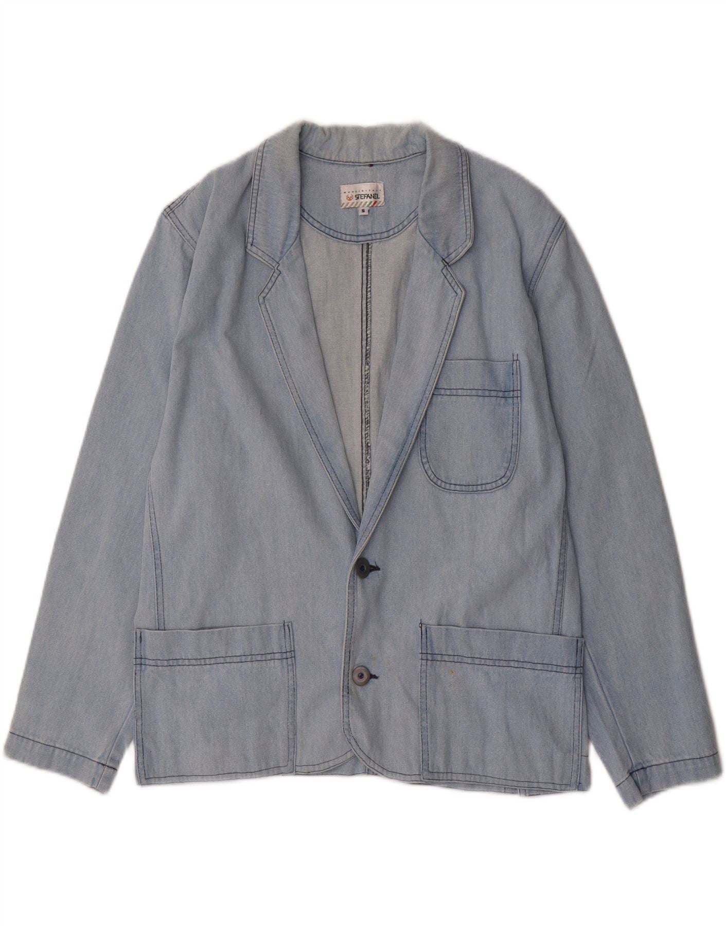 STEFANEL Womens Oversized 2 Button Denim Blazer Jacket UK 10 Small Blue