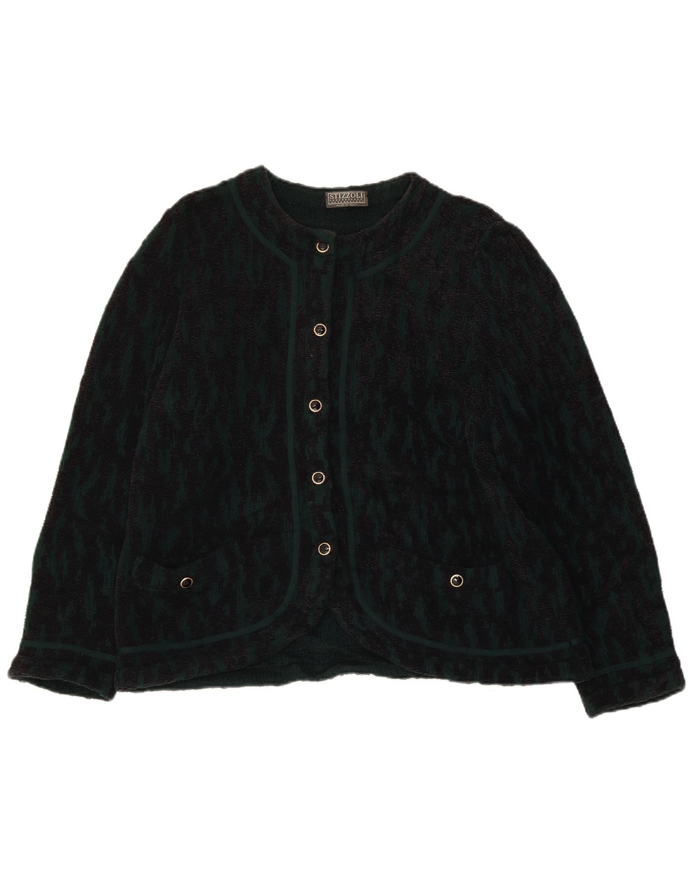 STIZZOLI Womens Abstract Pattern Cardigan Sweater IT 52 2XL Green Wool