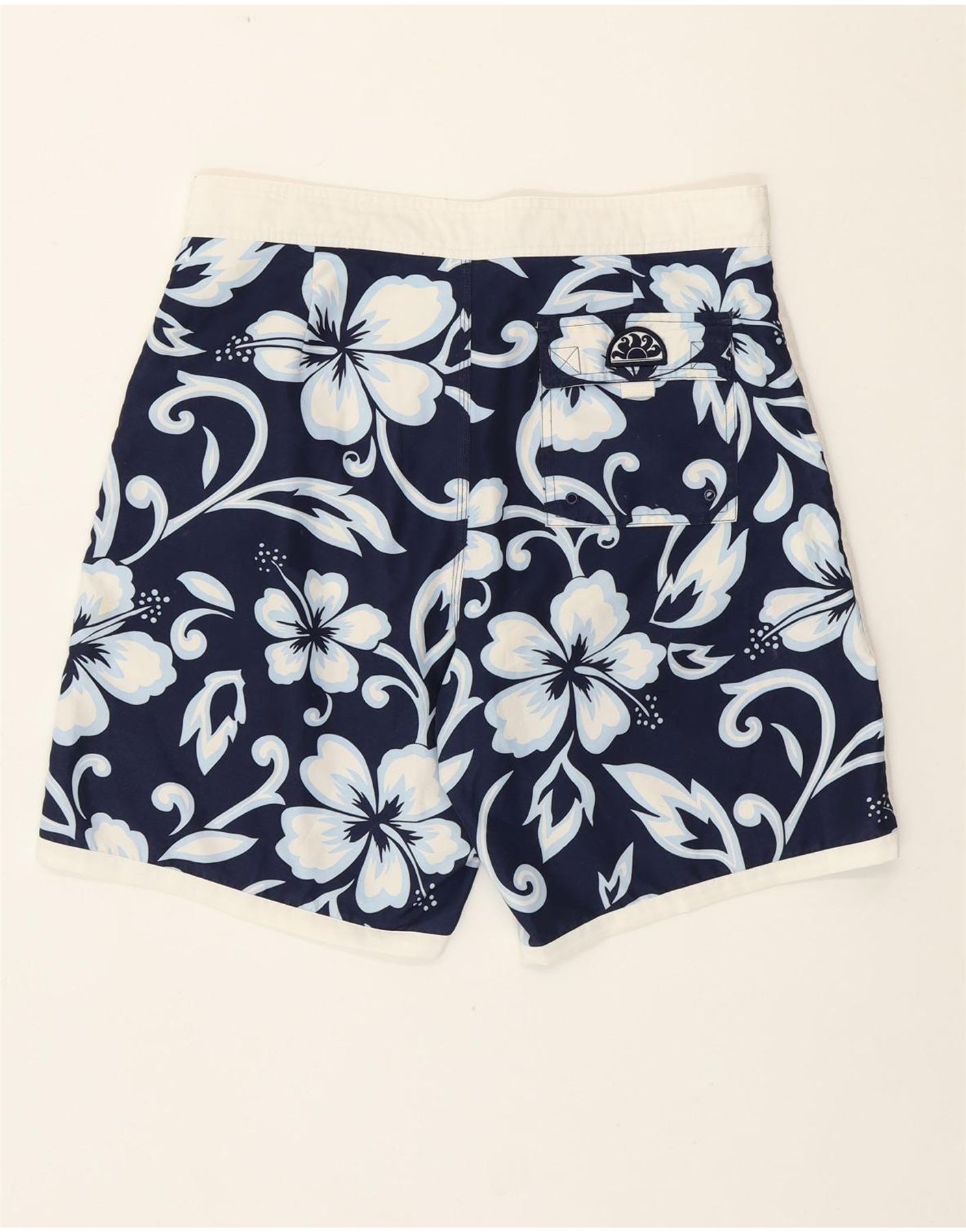 - AI Description: This Sundek mens swimming shorts are crafted from woven polyester fabric for quick drying comfort. They feature a vibrant navy blue base with a striking white and light blue floral Hawaiian pattern. The regular fit ensures ease of movement. A drawstring closure provides an adjustable waist. Practical pockets add functionality. A subtle logo accent completes the design, perfect for the beach or pool.