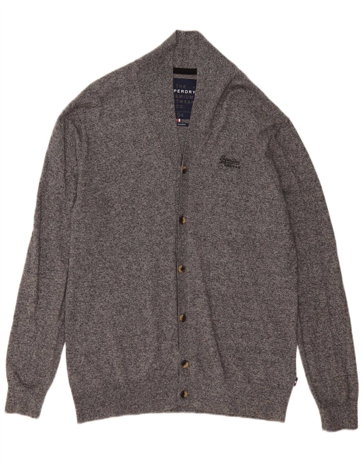 SUPERDRY Mens Cardigan Sweater XL Grey Flecked Cotton