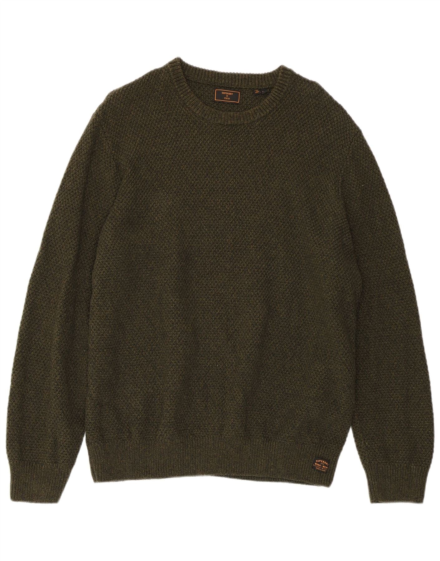 SUPERDRY Mens Crew Neck Jumper Sweater 2XL Khaki Cotton
