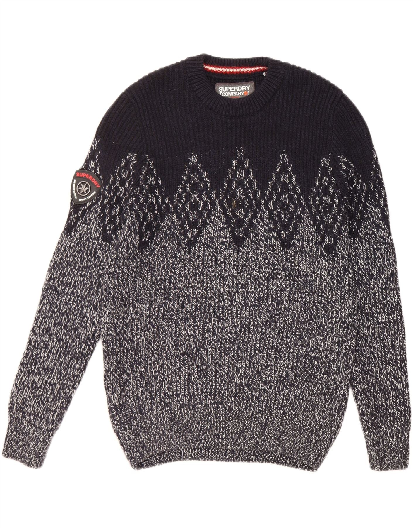 SUPERDRY Mens Crew Neck Jumper Sweater Large Navy Blue Argyle/Diamond