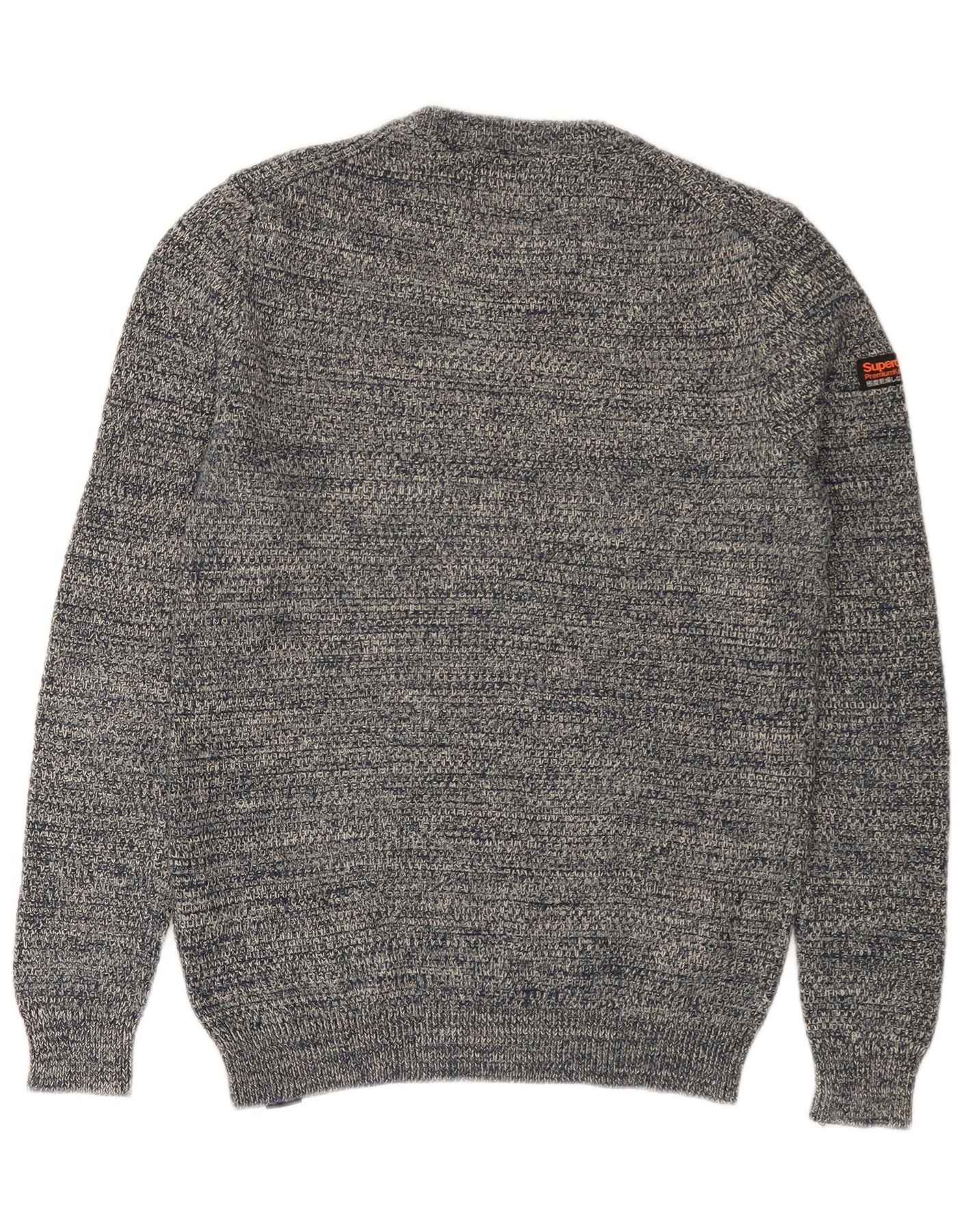 SUPERDRY Mens Crew Neck Jumper Sweater Small Navy Blue Flecked Cotton