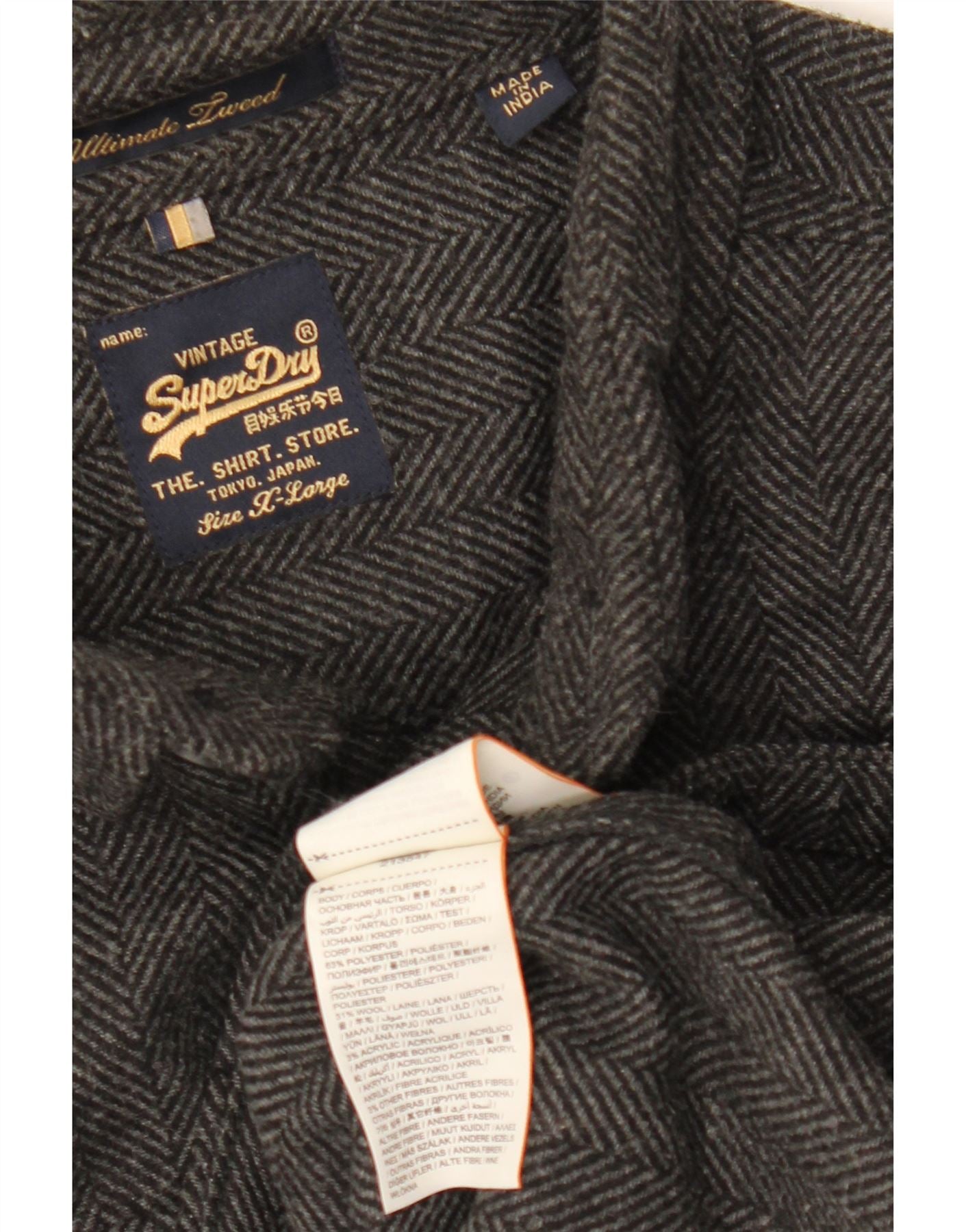 SUPERDRY Mens Flannel Shirt XL Grey Herringbone Polyester