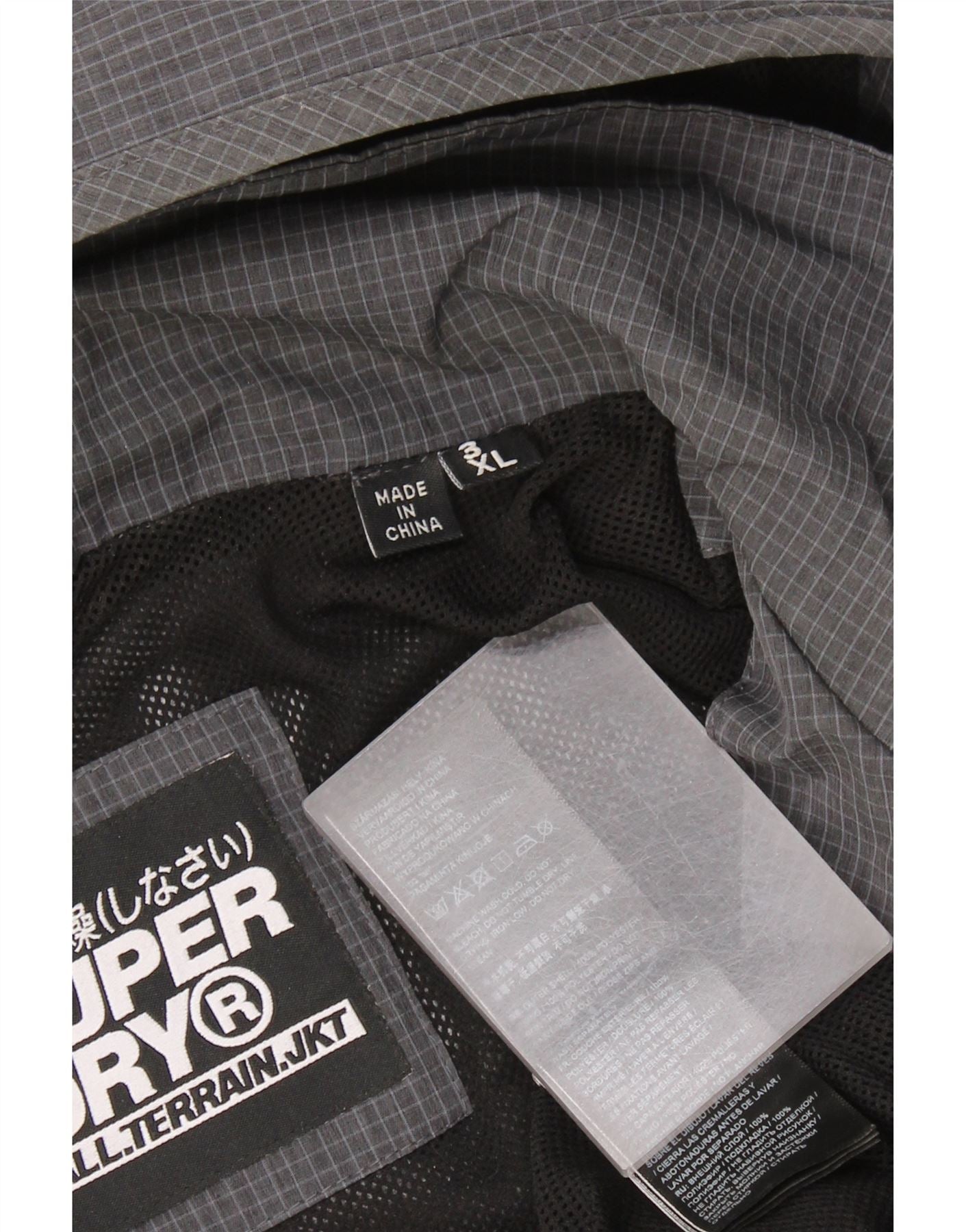 Superdry Mens Graphic Hooded Rain Jacket UK 46 3XL Grey Check Polyester