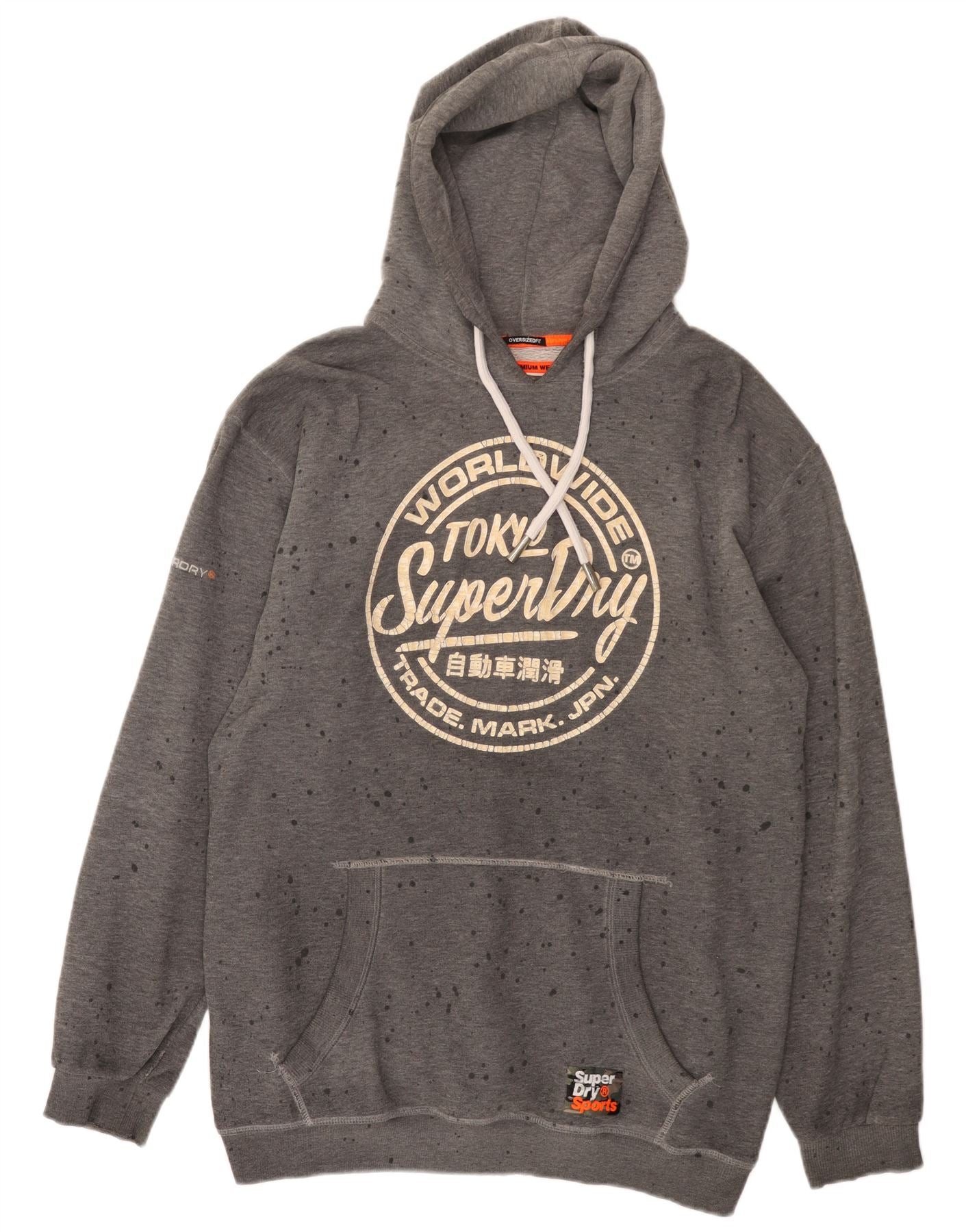 SUPERDRY Mens Graphic Hoodie Jumper XL Grey Spotted Cotton