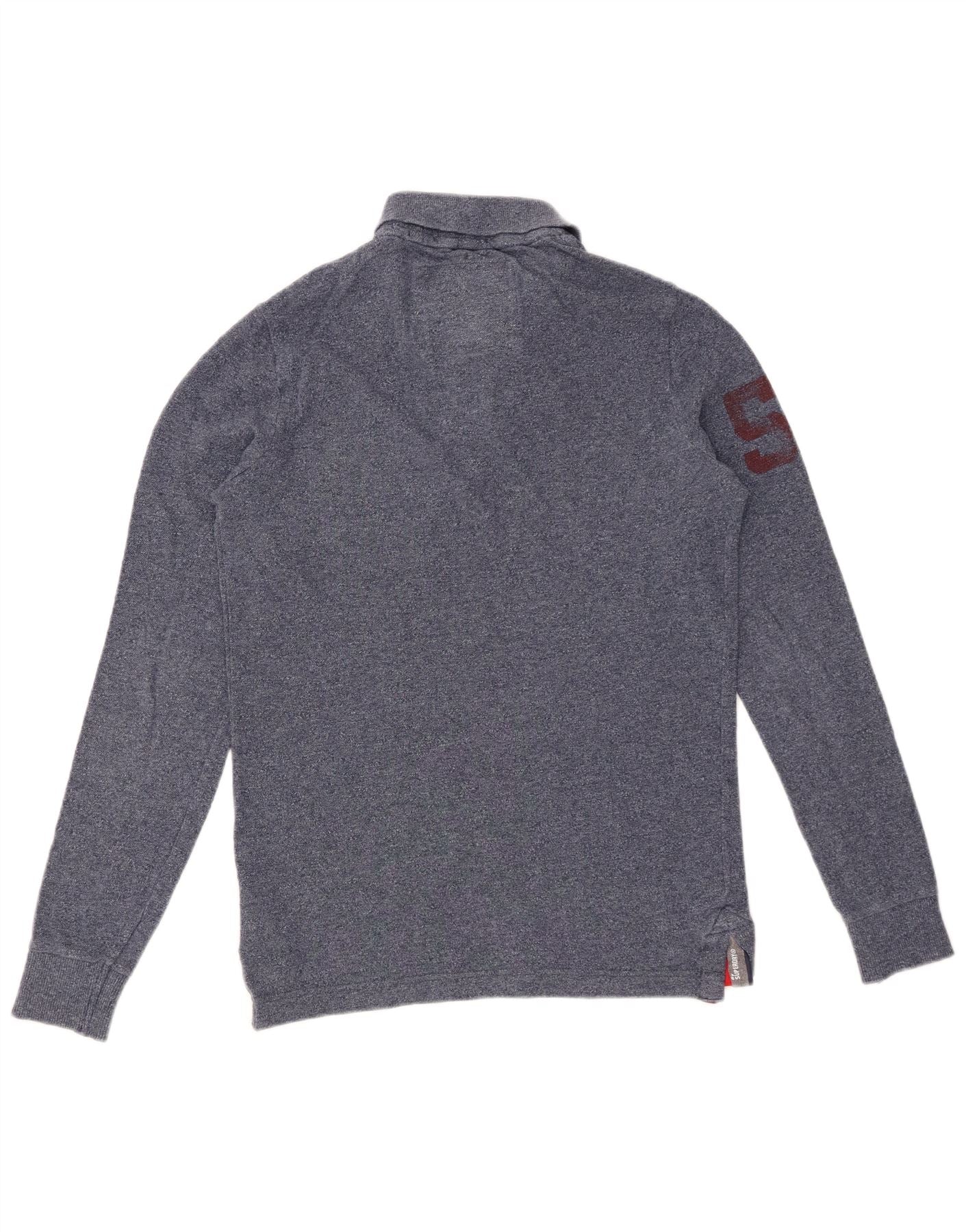SUPERDRY Mens Graphic Long Sleeve Polo Shirt Small Navy Blue Cotton