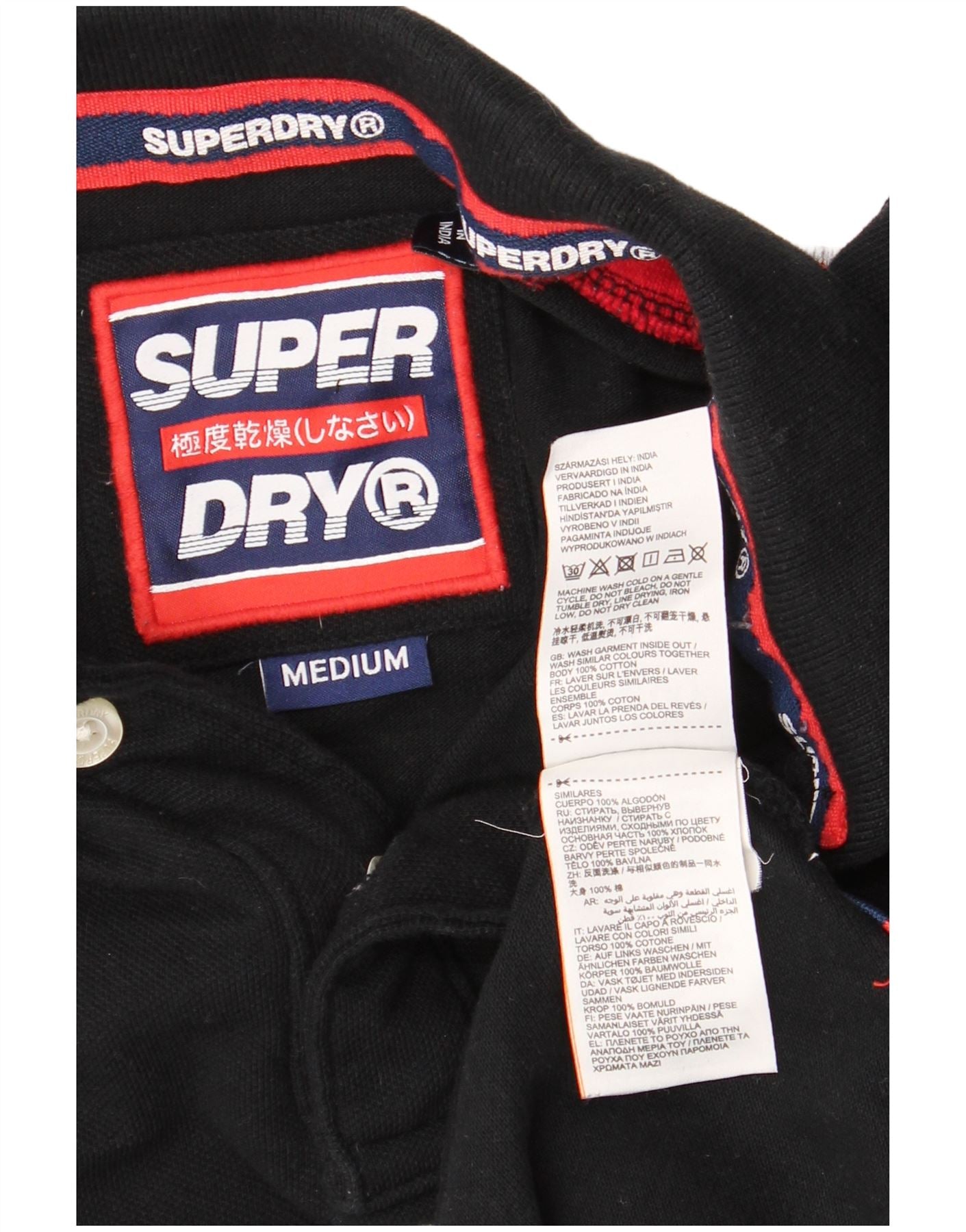 SUPERDRY Mens Graphic Polo Shirt Medium Black Colourblock Cotton