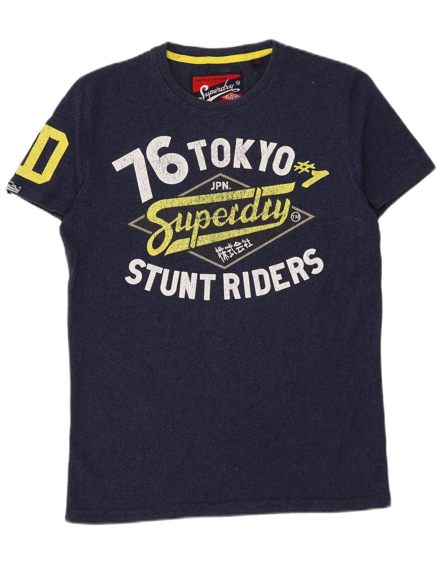 SUPERDRY Mens Graphic T-Shirt Top Medium Navy Blue Cotton