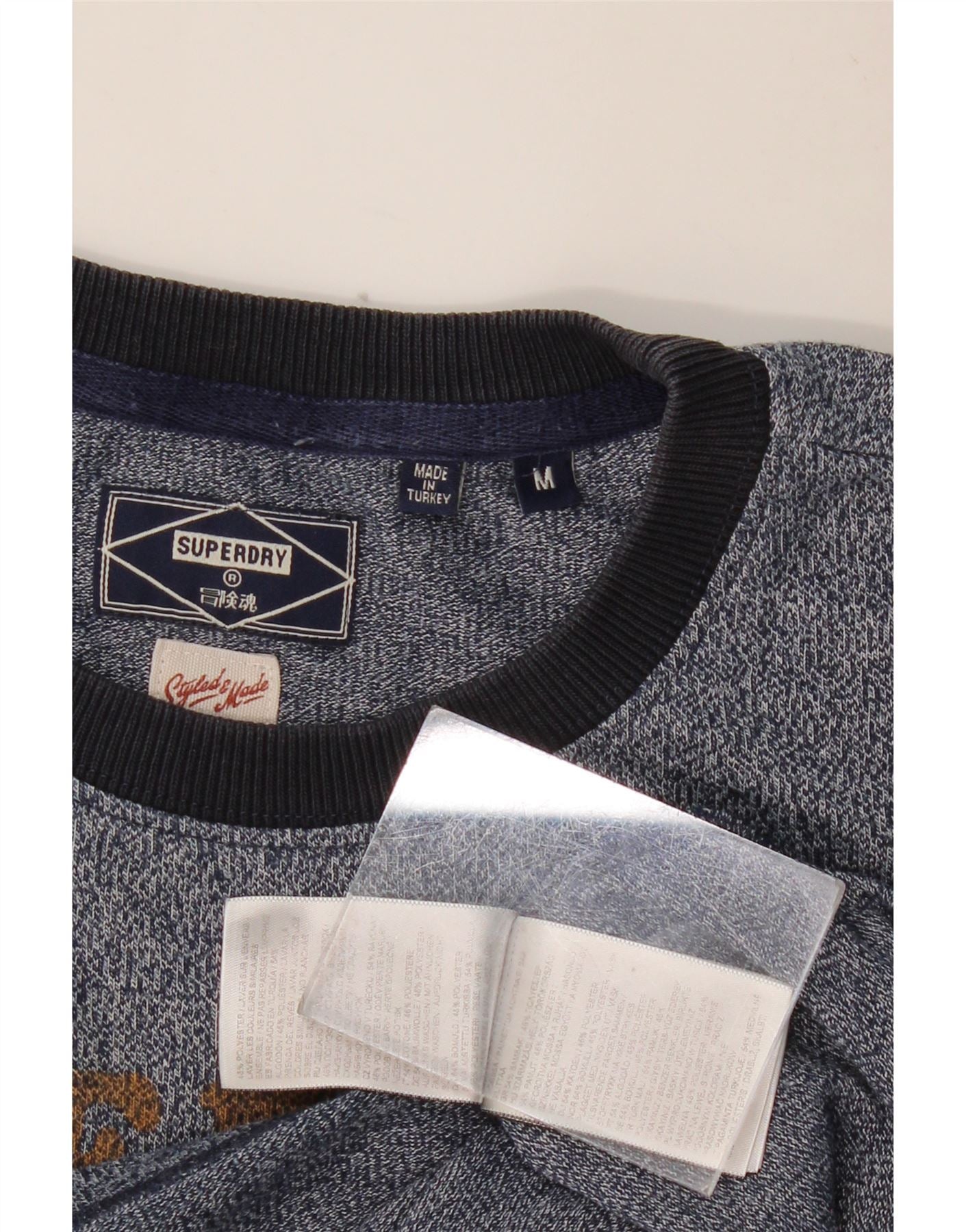 SUPERDRY Mens Graphic T-Shirt Top Medium Navy Blue Flecked Cotton
