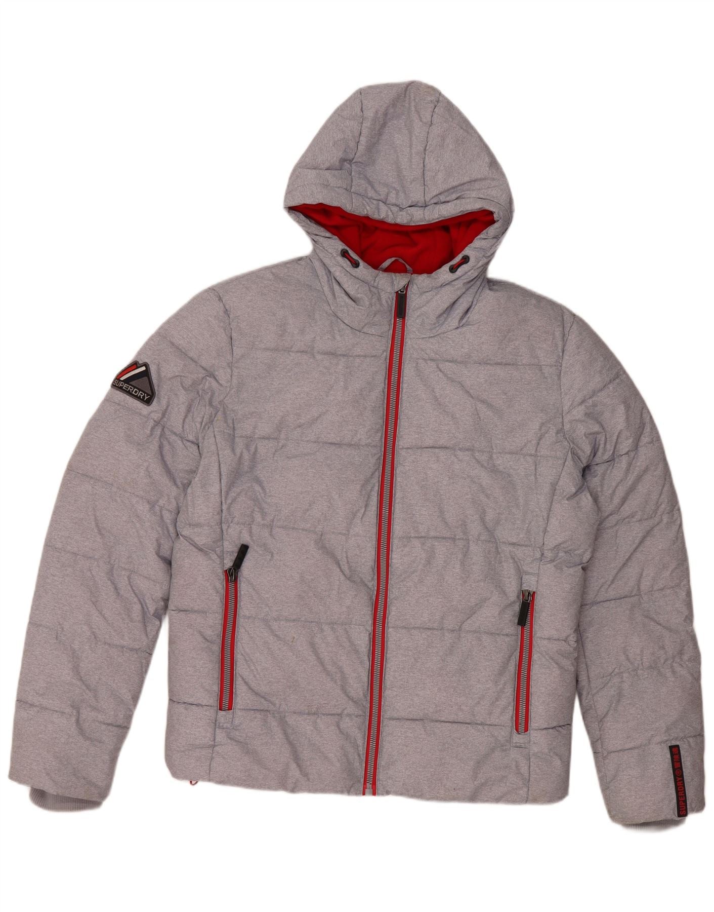 SUPERDRY Mens Hooded Padded Jacket UK 38 Medium Grey Polyester