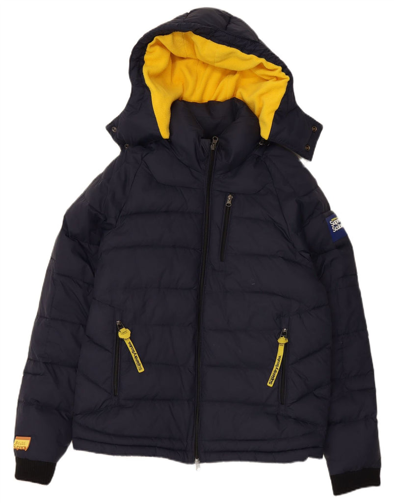 SUPERDRY Mens Hooded Padded Jacket UK 40 Large Navy Blue Nylon