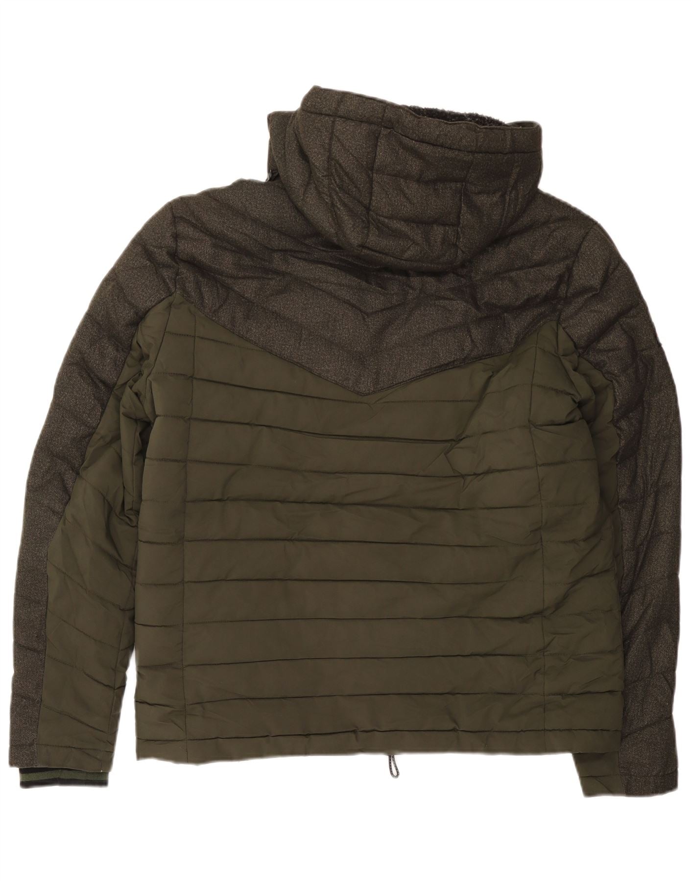 SUPERDRY Mens Hooded Padded Jacket UK 42 XL Khaki Colourblock Polyester