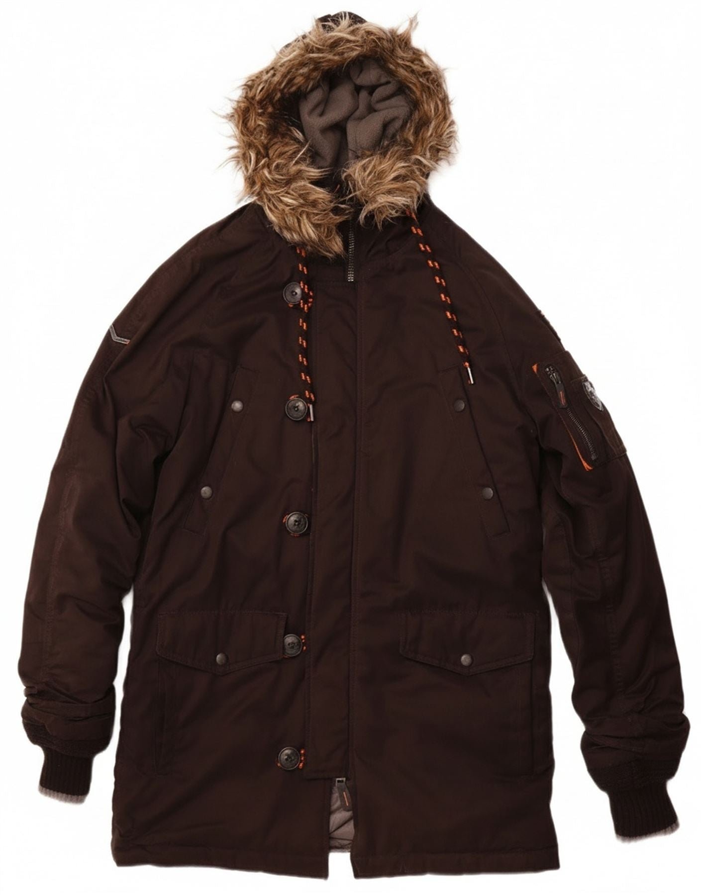 SUPERDRY Mens Hooded Parka Jacket UK 36 Small Black Polyester