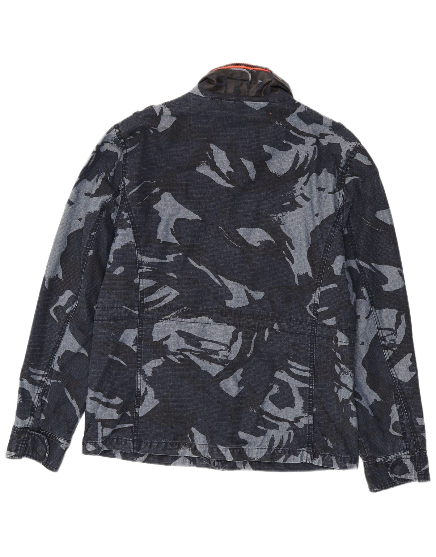 SUPERDRY Mens Military Jacket UK 40 Large Navy Blue Camouflage Cotton
