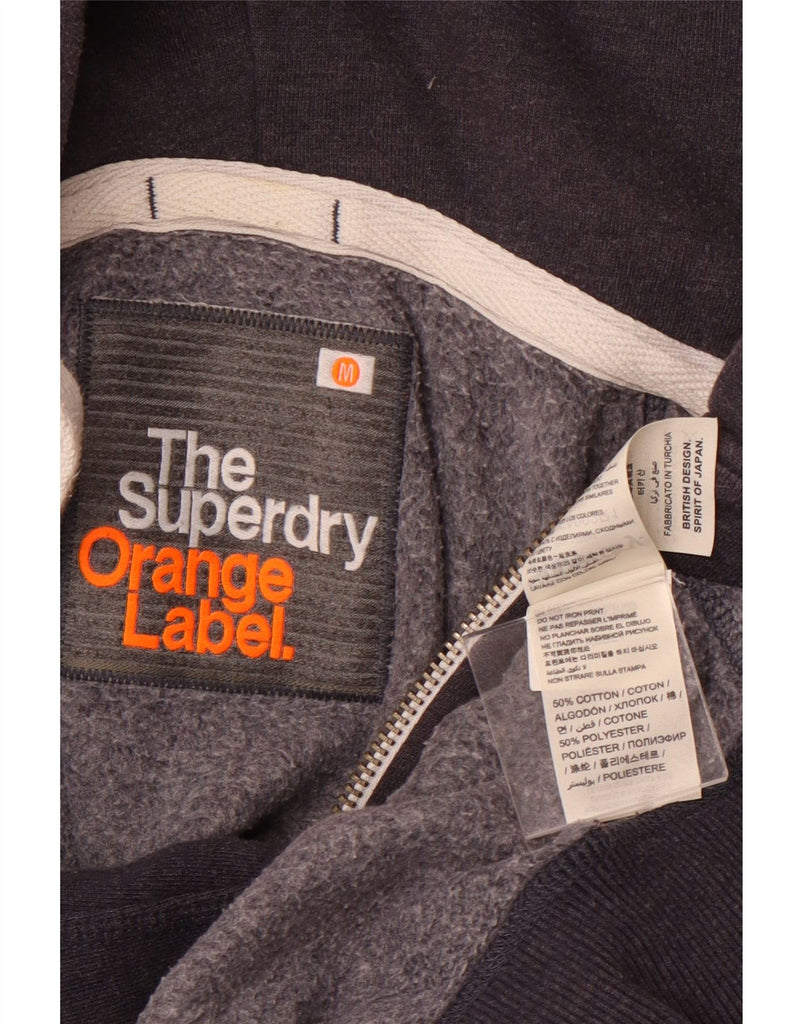 SUPERDRY Mens Orange Label Zip Hoodie Sweater Medium Navy Blue Cotton