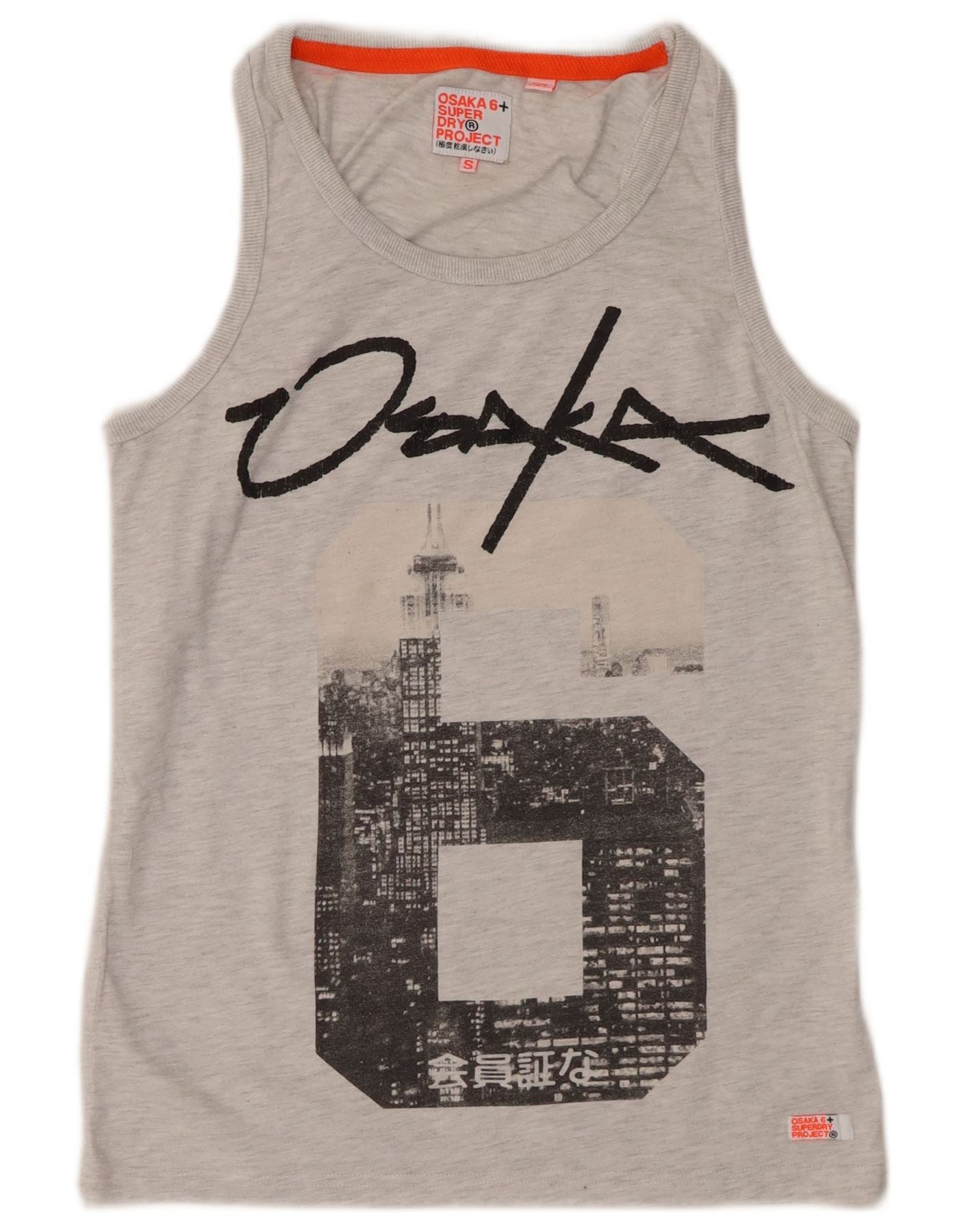 SUPERDRY Mens Osaka Graphic Vest Top Small Grey Flecked Cotton