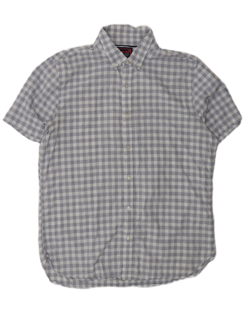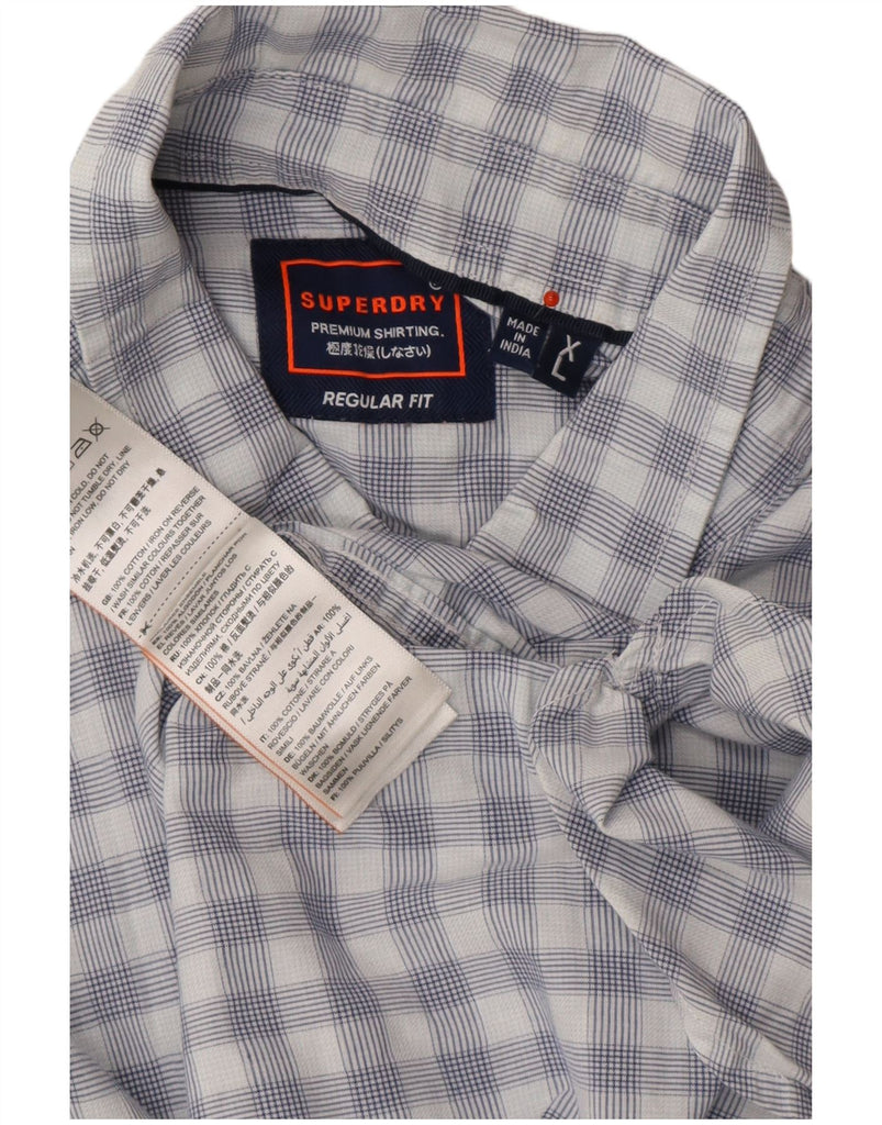 SUPERDRY Mens Regular Fit Short Sleeve Shirt XL Blue Check Cotton