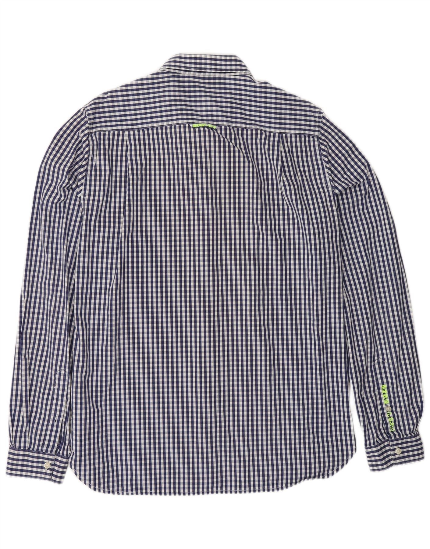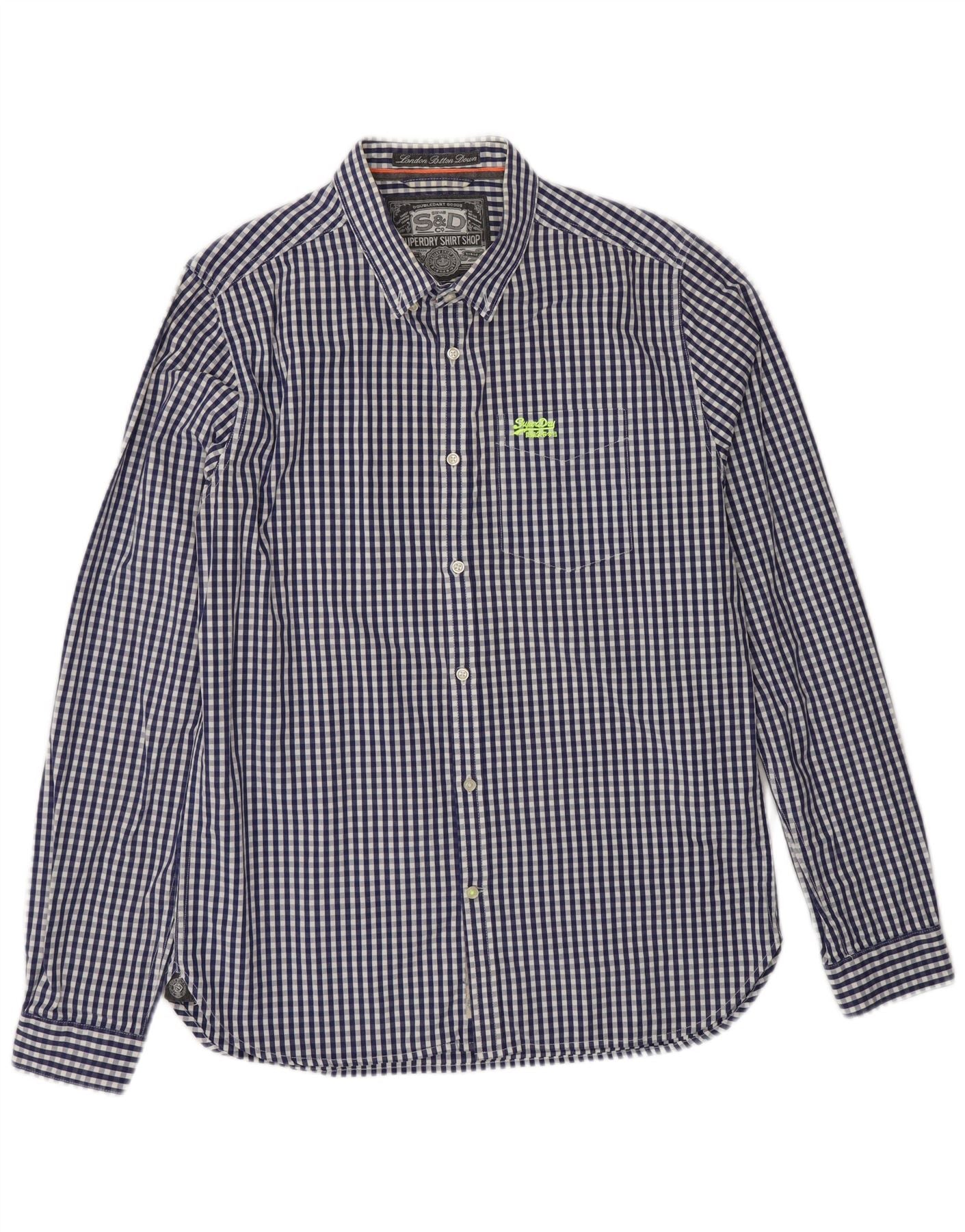 SUPERDRY Mens Shirt Large Navy Blue Gingham Cotton