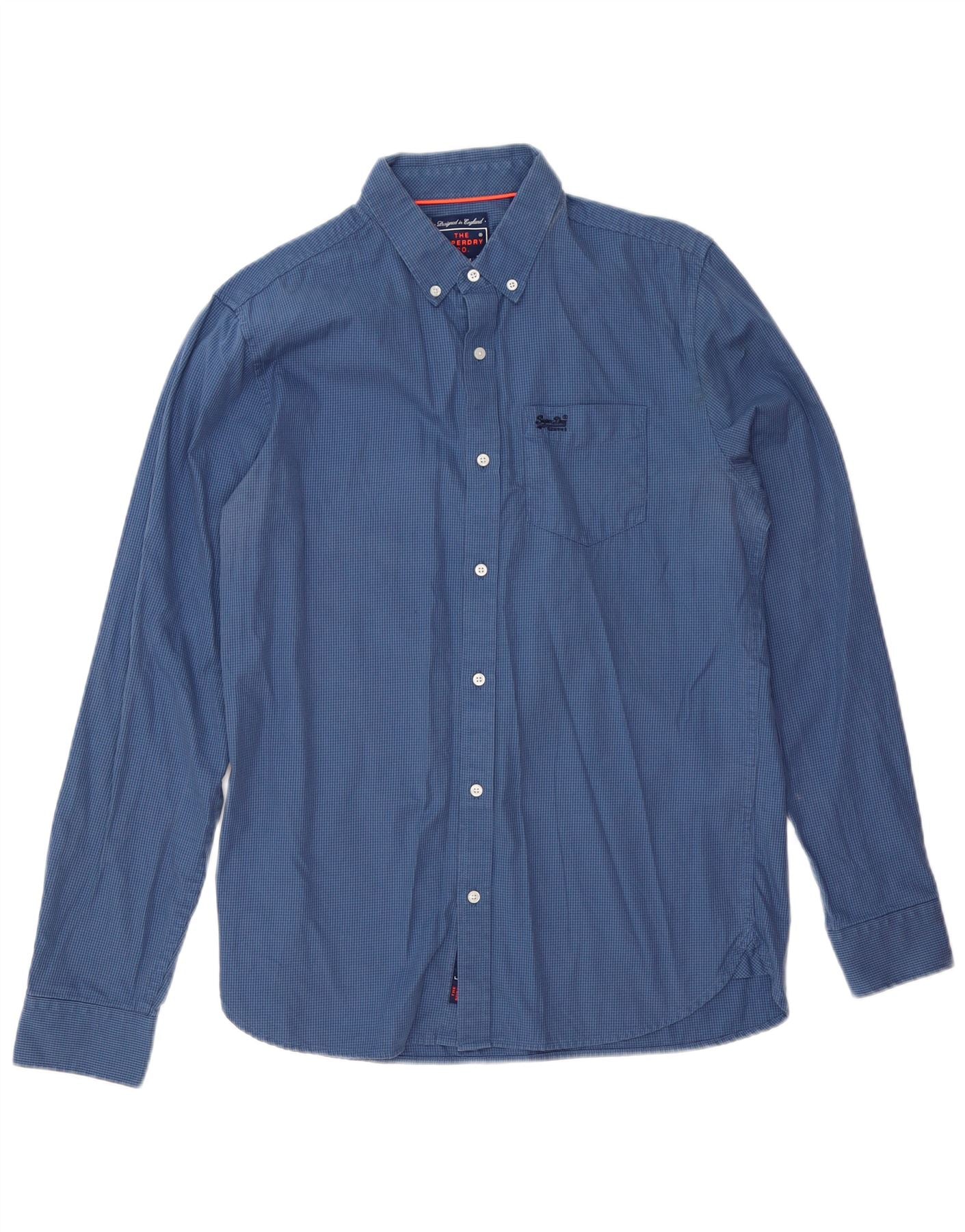 SUPERDRY Mens Shirt Medium Blue Houndstooth Cotton