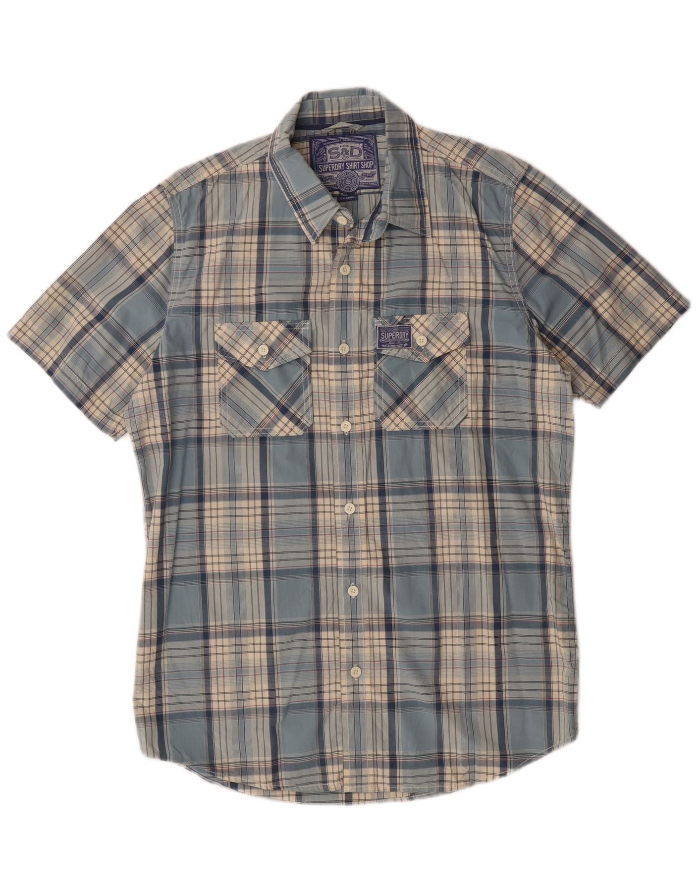 SUPERDRY Mens Short Sleeve Shirt XL Blue Check Cotton