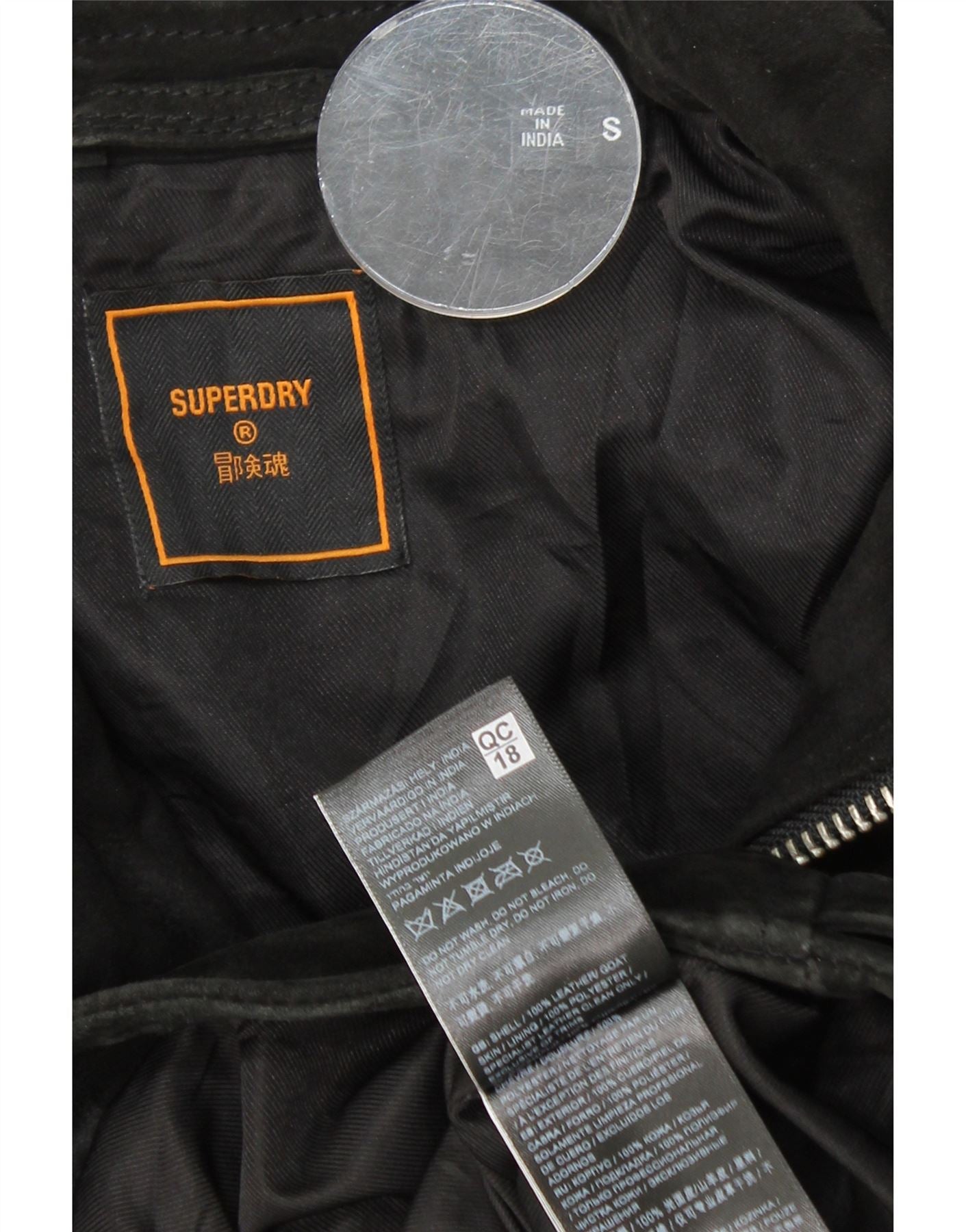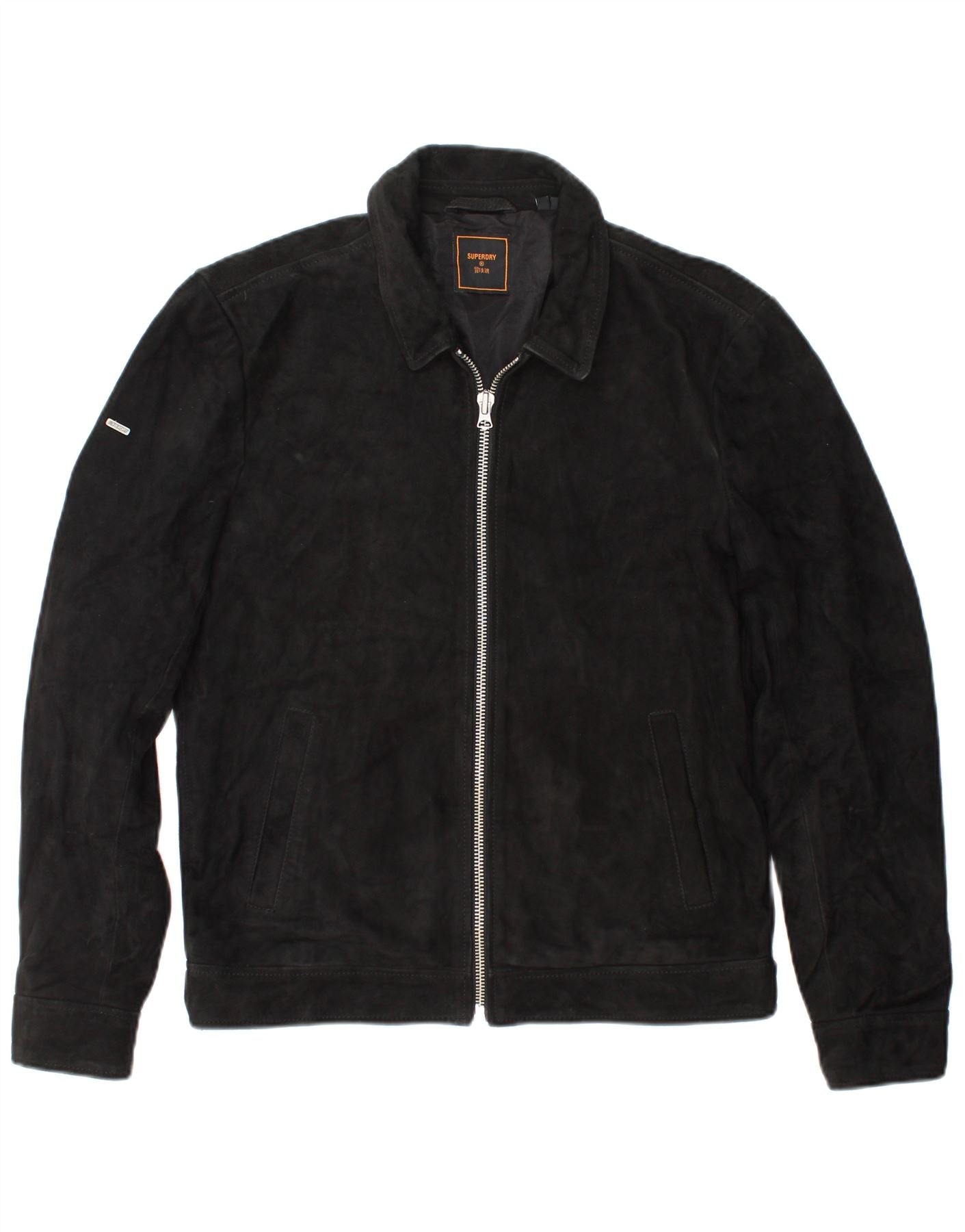 SUPERDRY Mens Suede Jacket UK 36 Small Black Leather