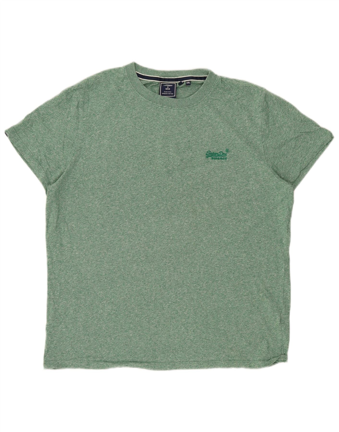 SUPERDRY Mens T-Shirt Top 2XL Green Flecked Cotton