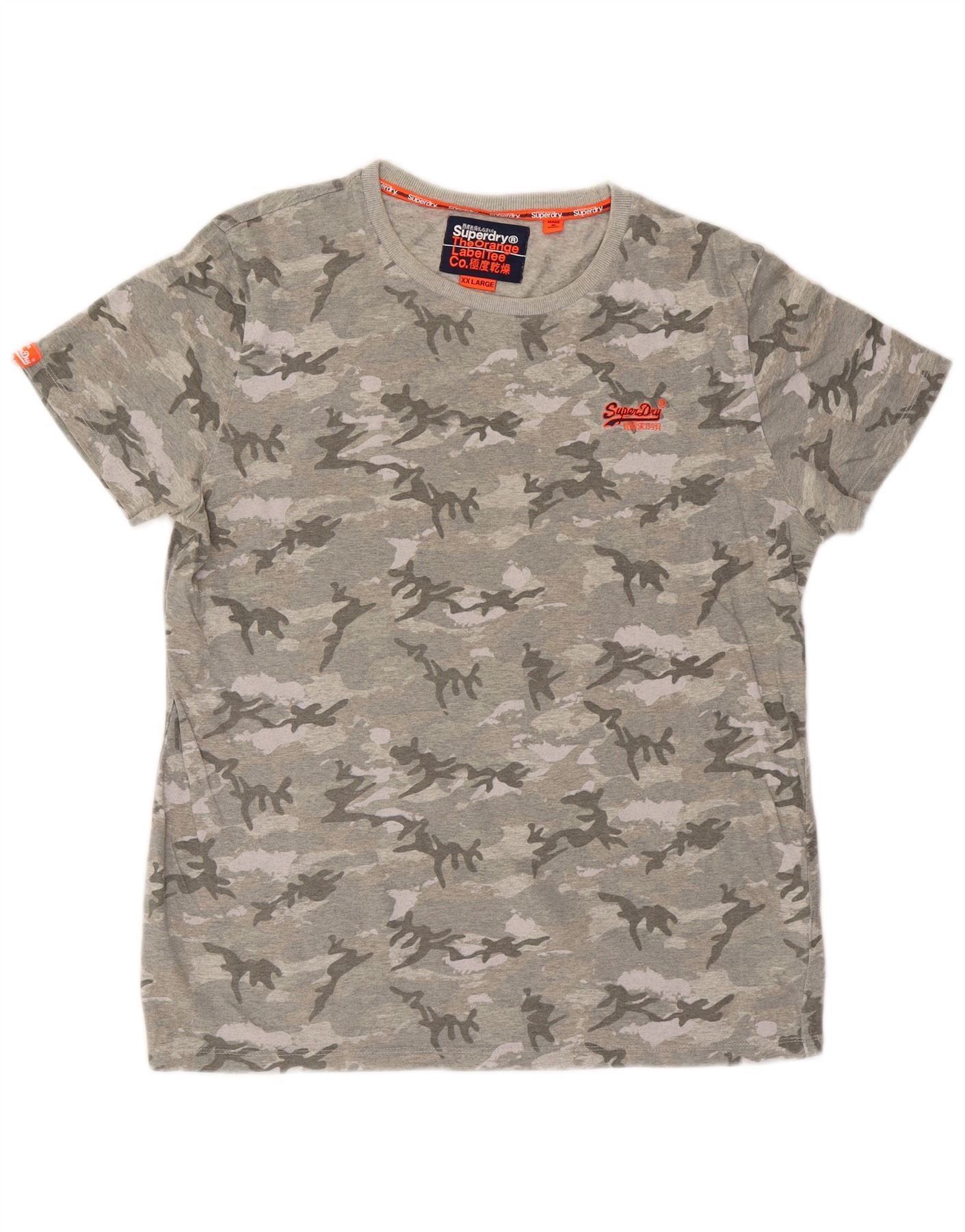 SUPERDRY Mens T-Shirt Top 2XL Grey Camouflage Cotton