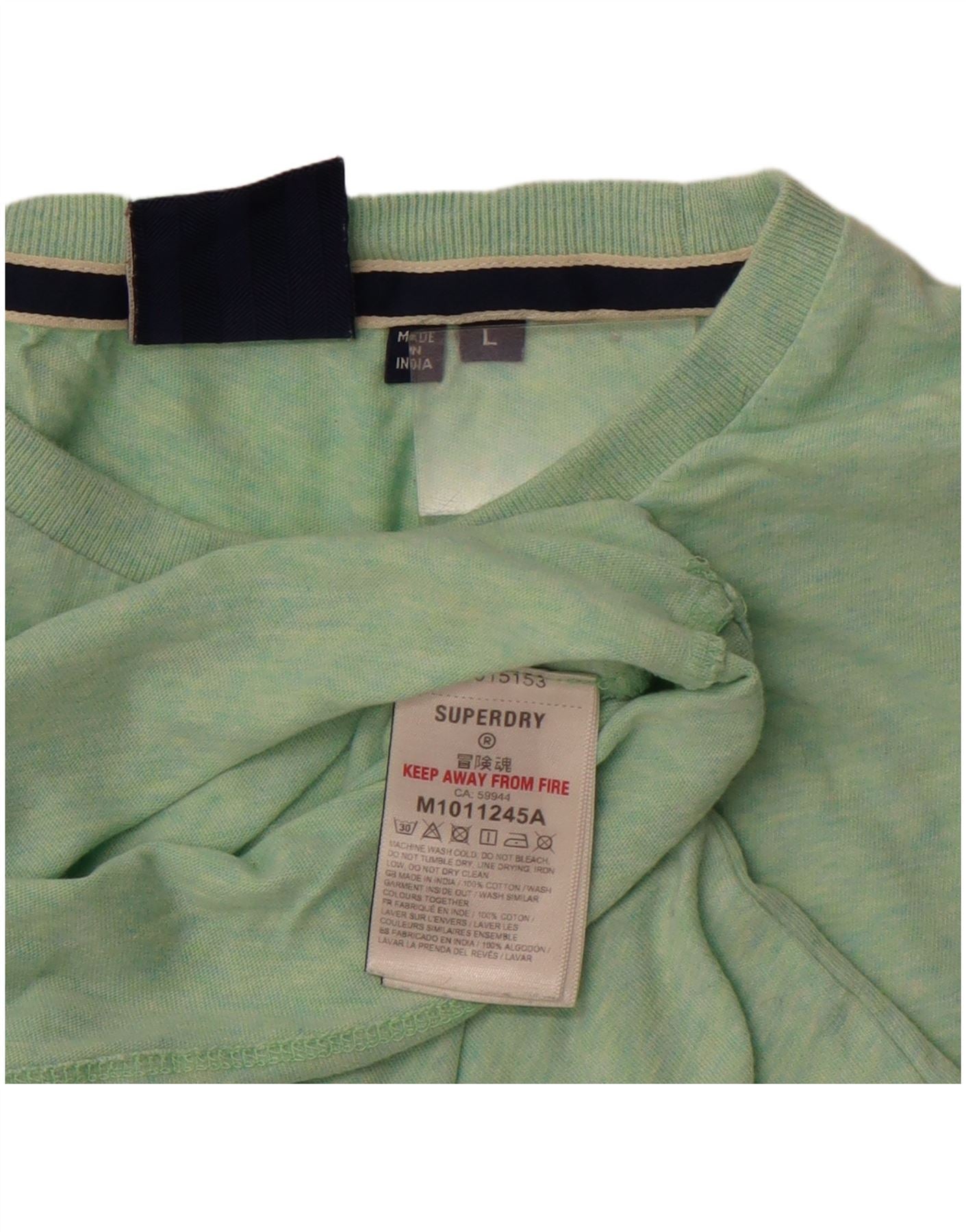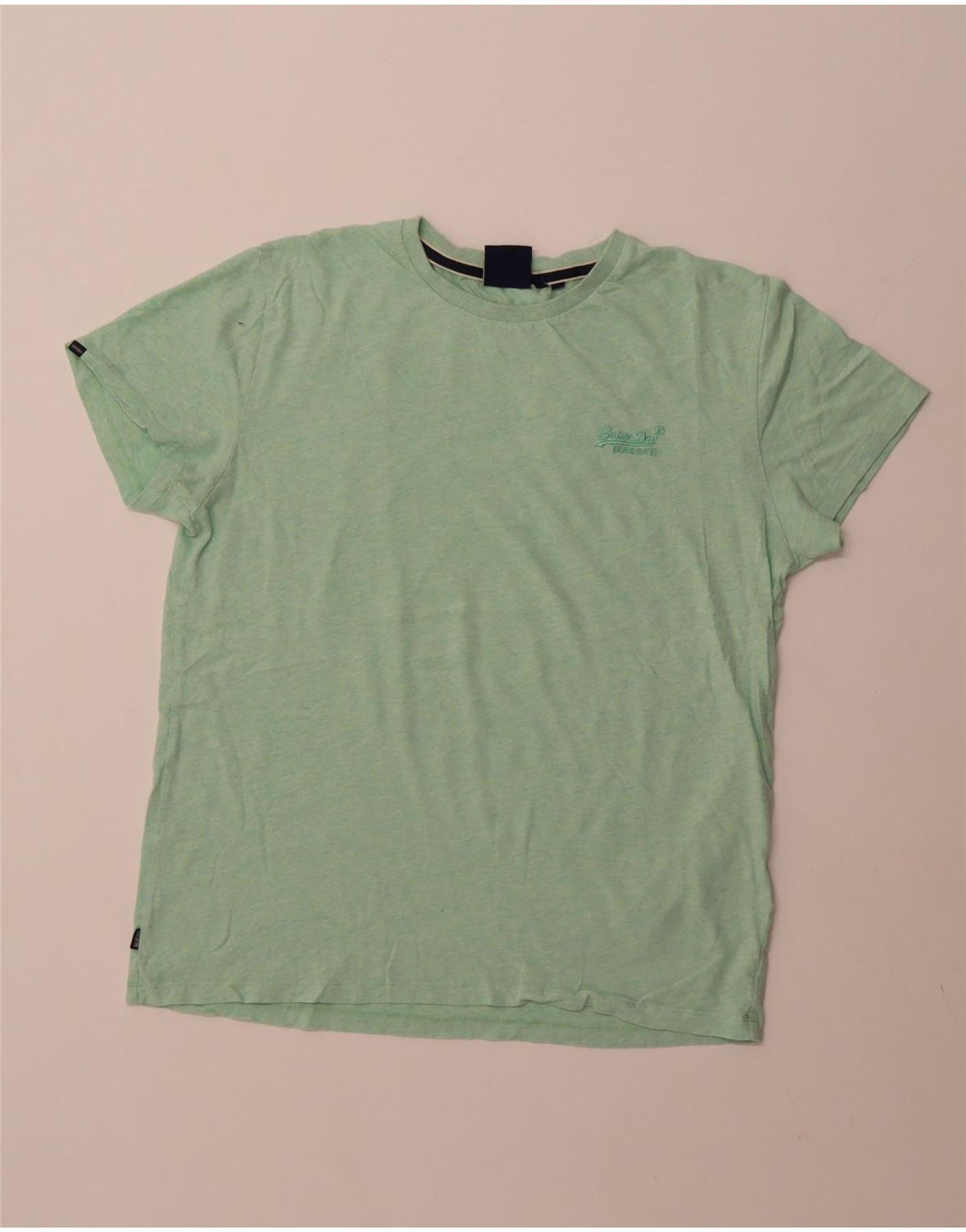 - AI Description: This Superdry mens Graphic T-shirt is crafted from soft green cotton jersey. It features a classic round neck and short sleeves. The regular fit ensures comfortable wear. A subtle branded logo adorns the chest. This pullover design offers effortless style for everyday casual looks.