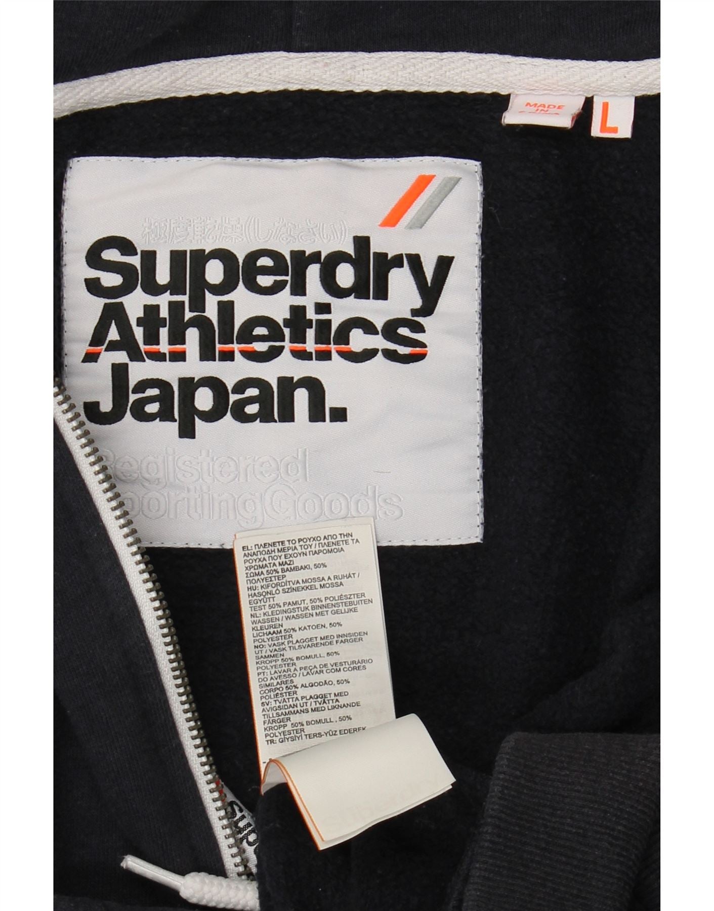 SUPERDRY Mens Zip Hoodie Sweater Large Navy Blue Cotton