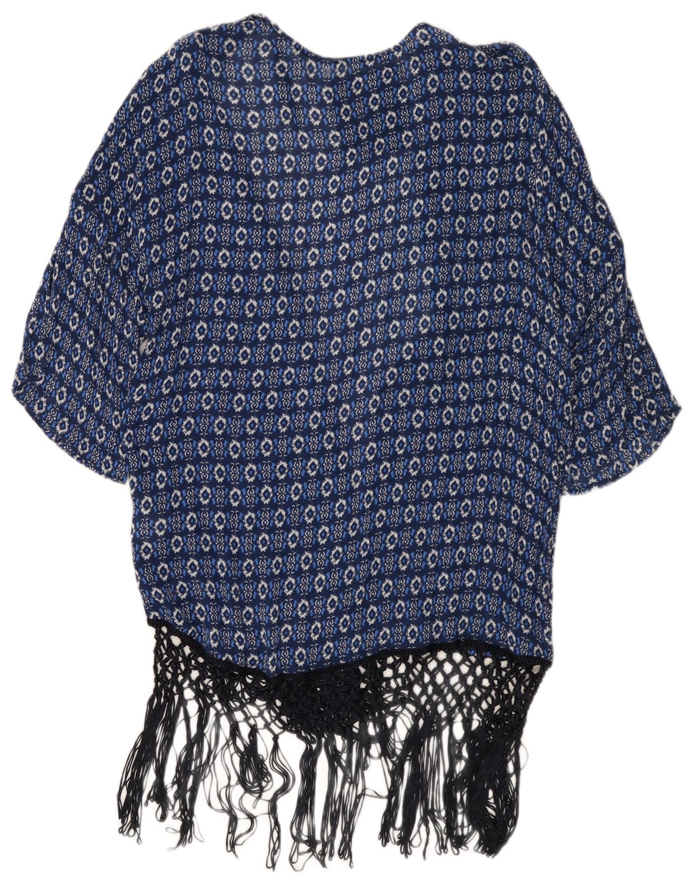 SUPERDRY Womens 3/4 Sleeve Longline Cardigan Top UK 14 Medium Blue Paisley