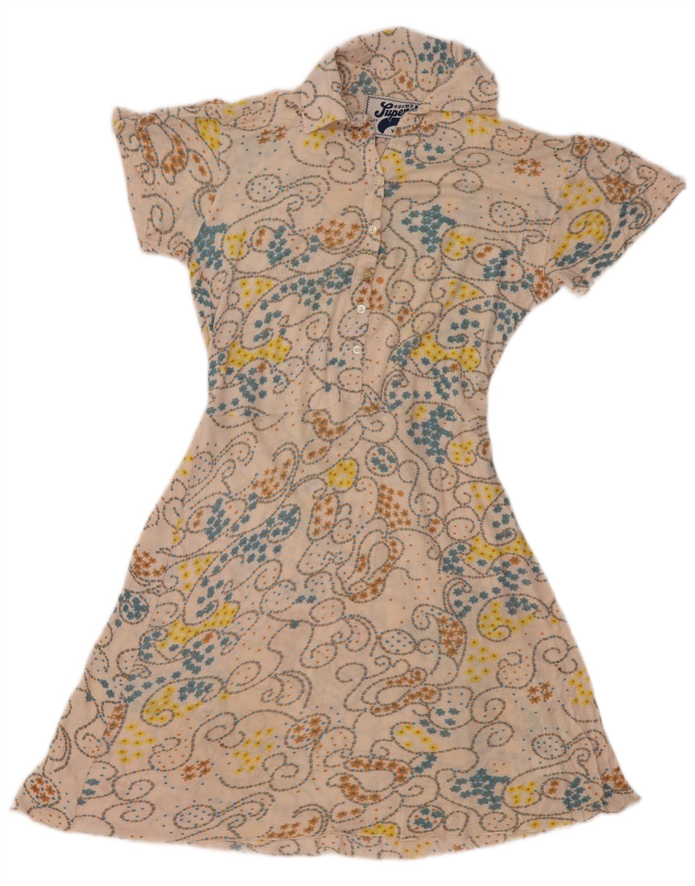 SUPERDRY Womens A-Line Dress UK 14 Medium Beige Floral