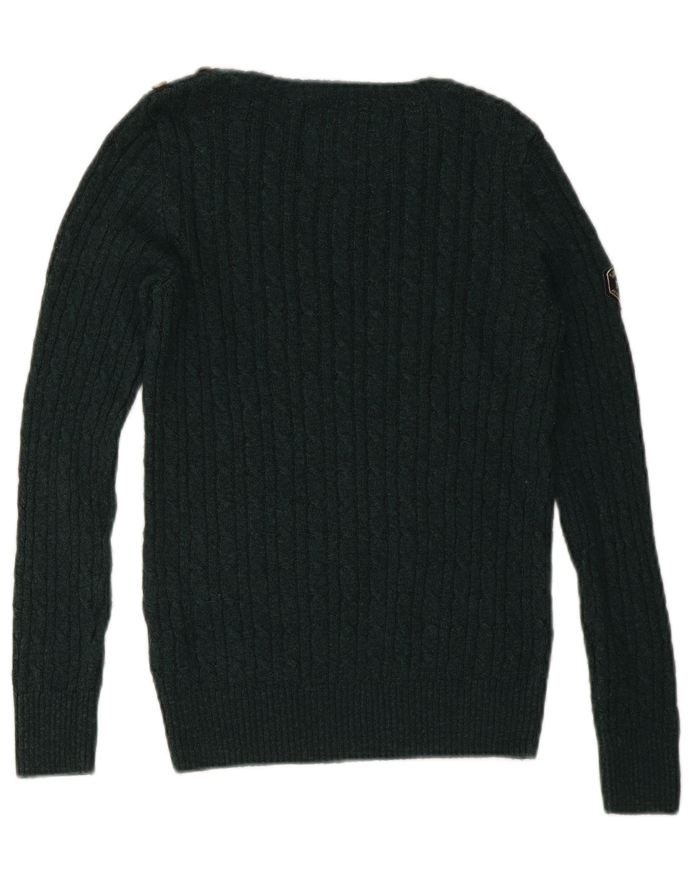 SUPERDRY Womens Boat Neck Jumper Sweater UK 10 Small Green Acrylic