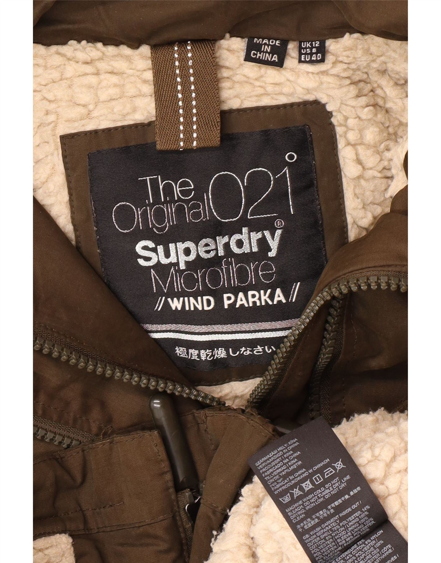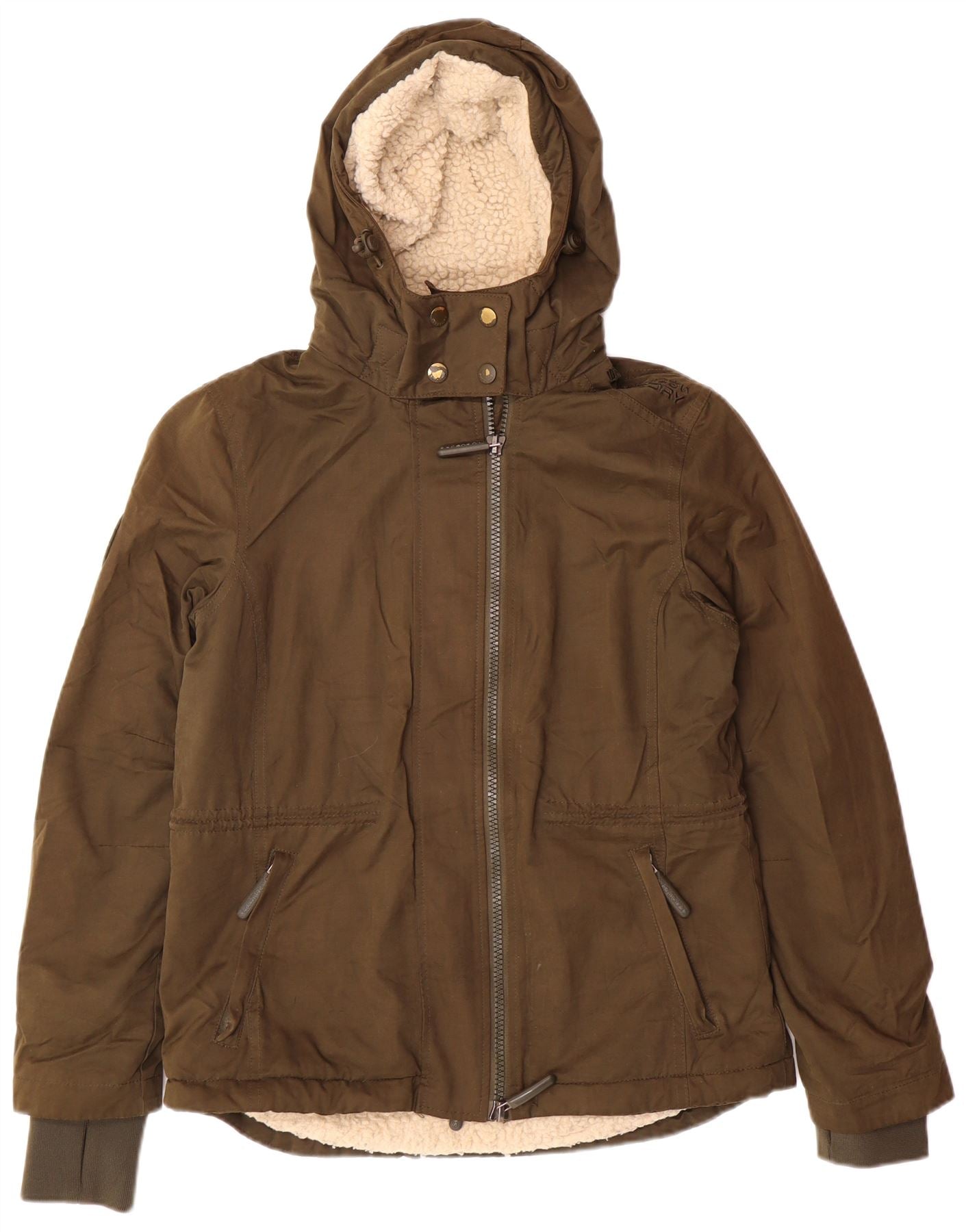 SUPERDRY Womens Graphic Hooded Windbreaker Jacket UK 12 Medium Khaki
