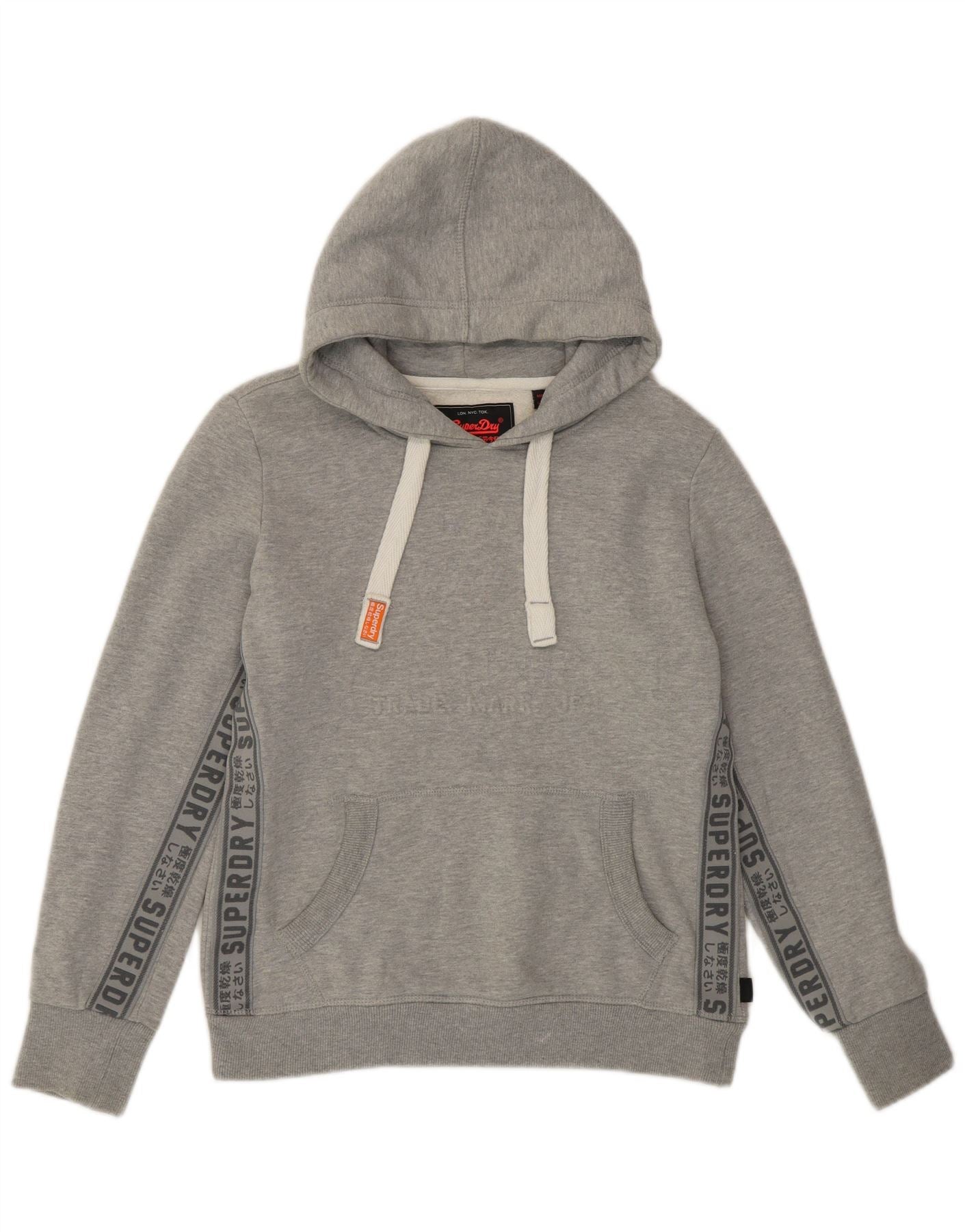 SUPERDRY Womens Graphic Hoodie Jumper UK 12 Medium Grey Cotton